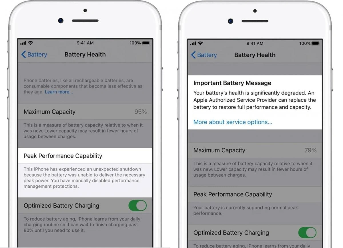Zaman keçdikcə batareyanın tutumu azalır və təxminən üç ildən sonra onun maksimal tutumu 80 faizdən aşağı düşə bilər. Bu isə telefonun daha tez boşalmasına və sistemin sabit işləməsi üçün performansı məhdudlaşdırmasına səbəb olur.