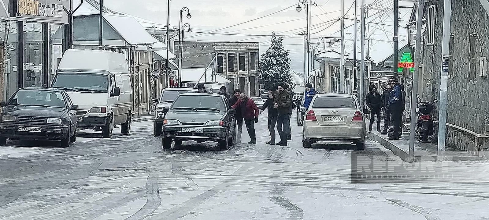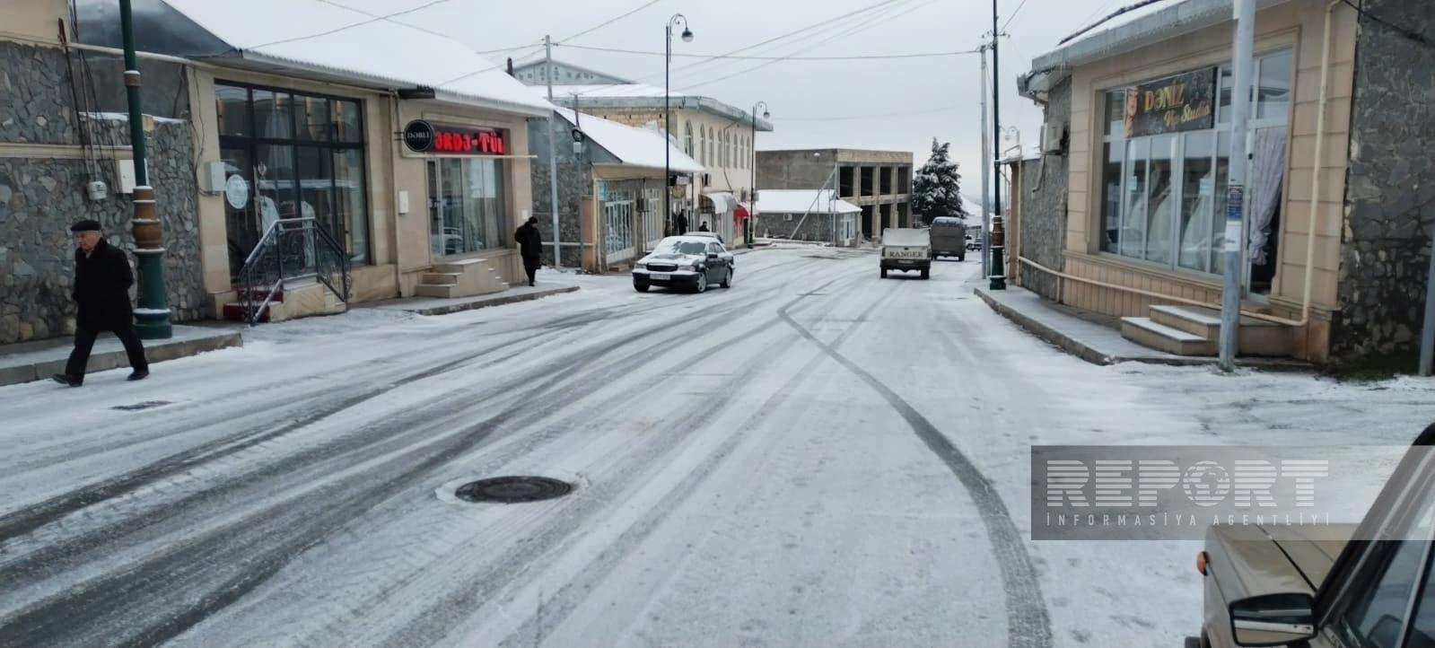 Qar və şaxtalı hava səbəbindən Oğuz şəhərinin mərkəzi küçələri buz bağlayıb.