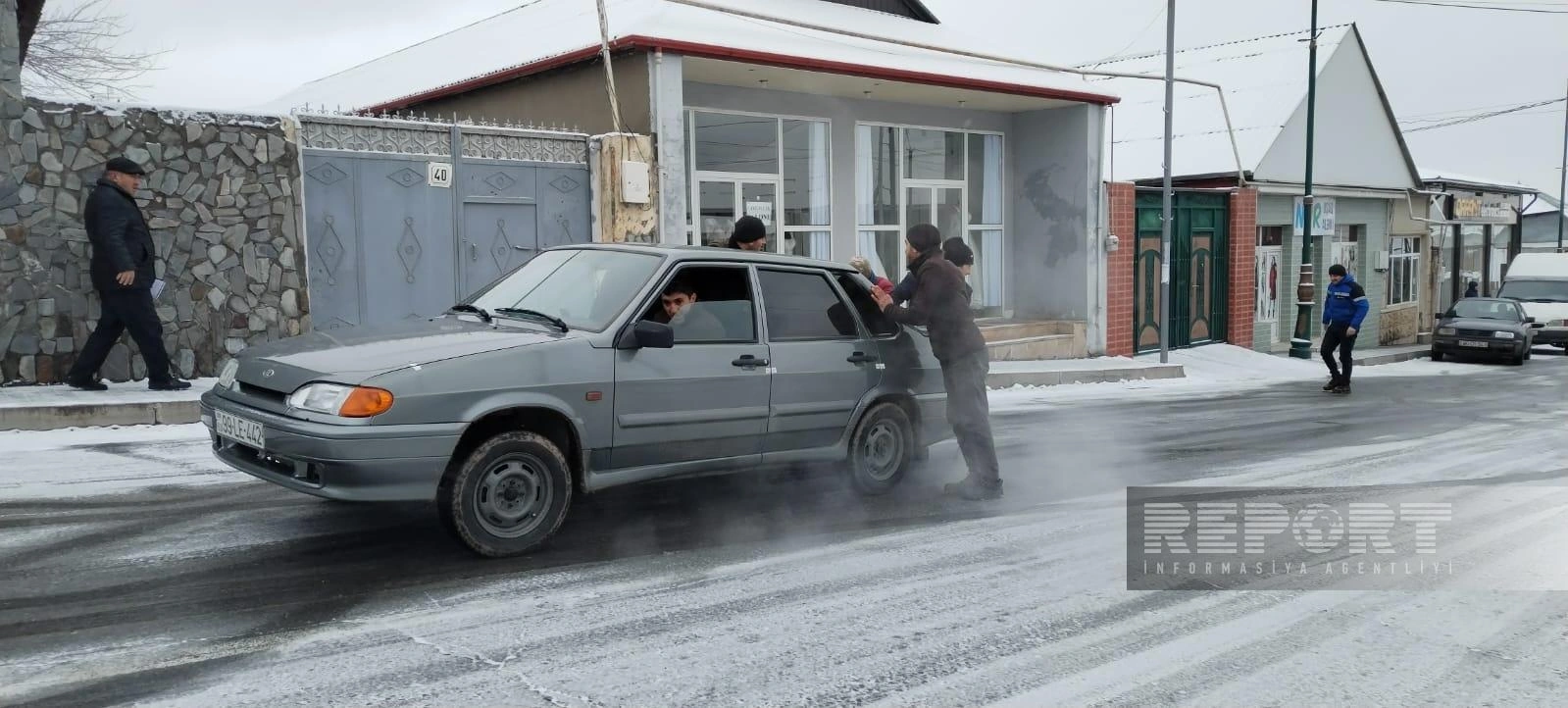 Sürücülərin sözlərinə görə, şəhərin küçələrinə duz və qum səpilməyib. Nəticədə belə problemlər yaranıb.