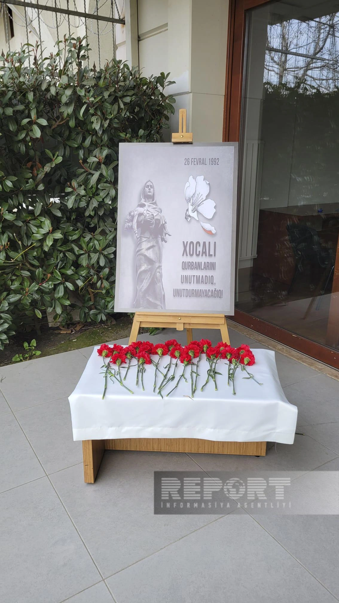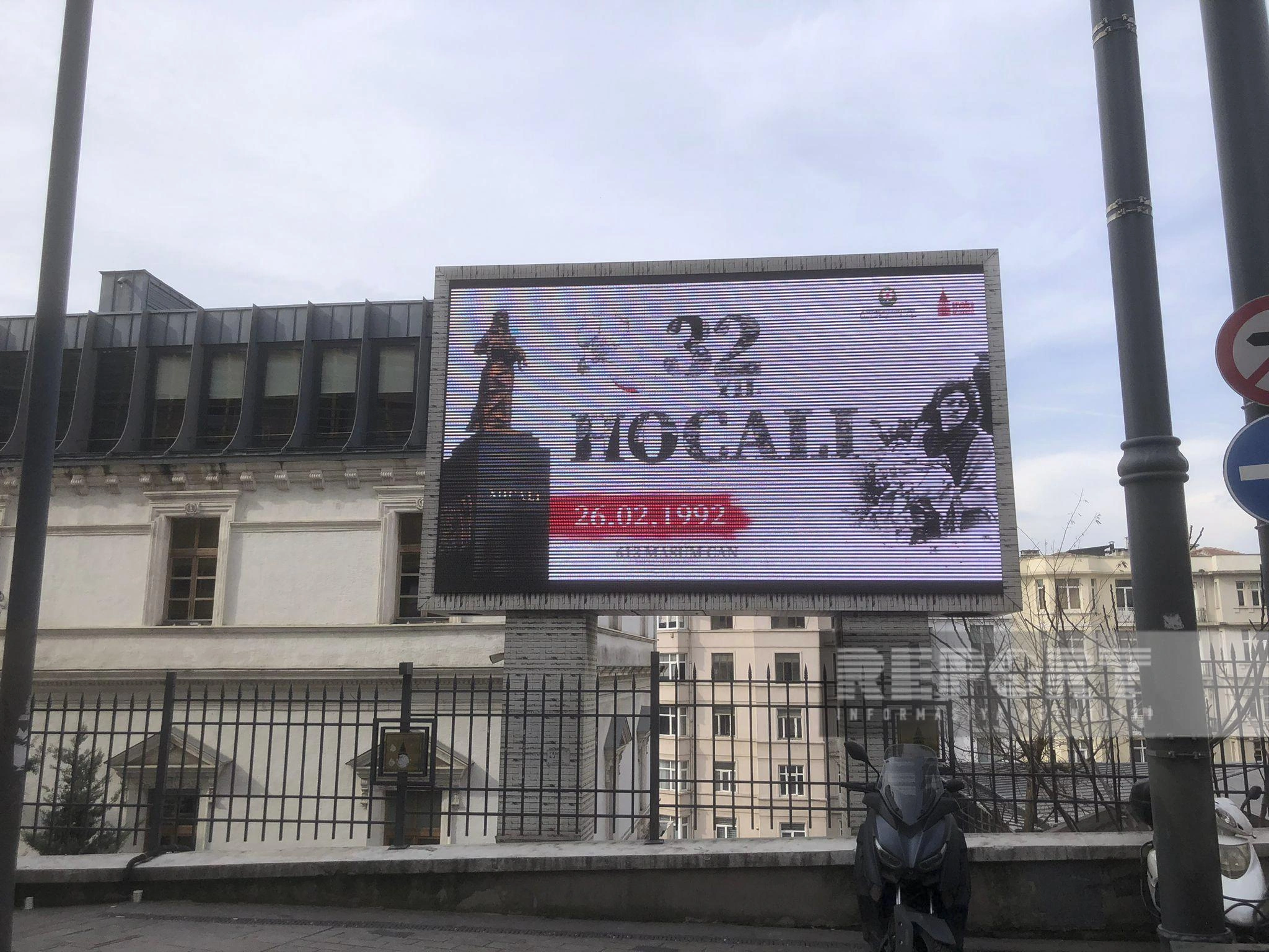 Monitorlarda Xocalıda törədilən qırğınla bağlı foto və videolarla yanaşı soyqırımı barədə məlumatlar da təqdim olunur.