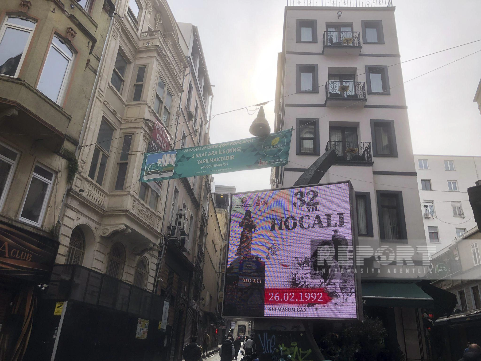 Türkiyənin İstanbul şəhərinin bəzi küçələrində quraşdırılan monitorlarda Xocalı soyqırımı ilə bağlı görüntülər nümayiş olunur.