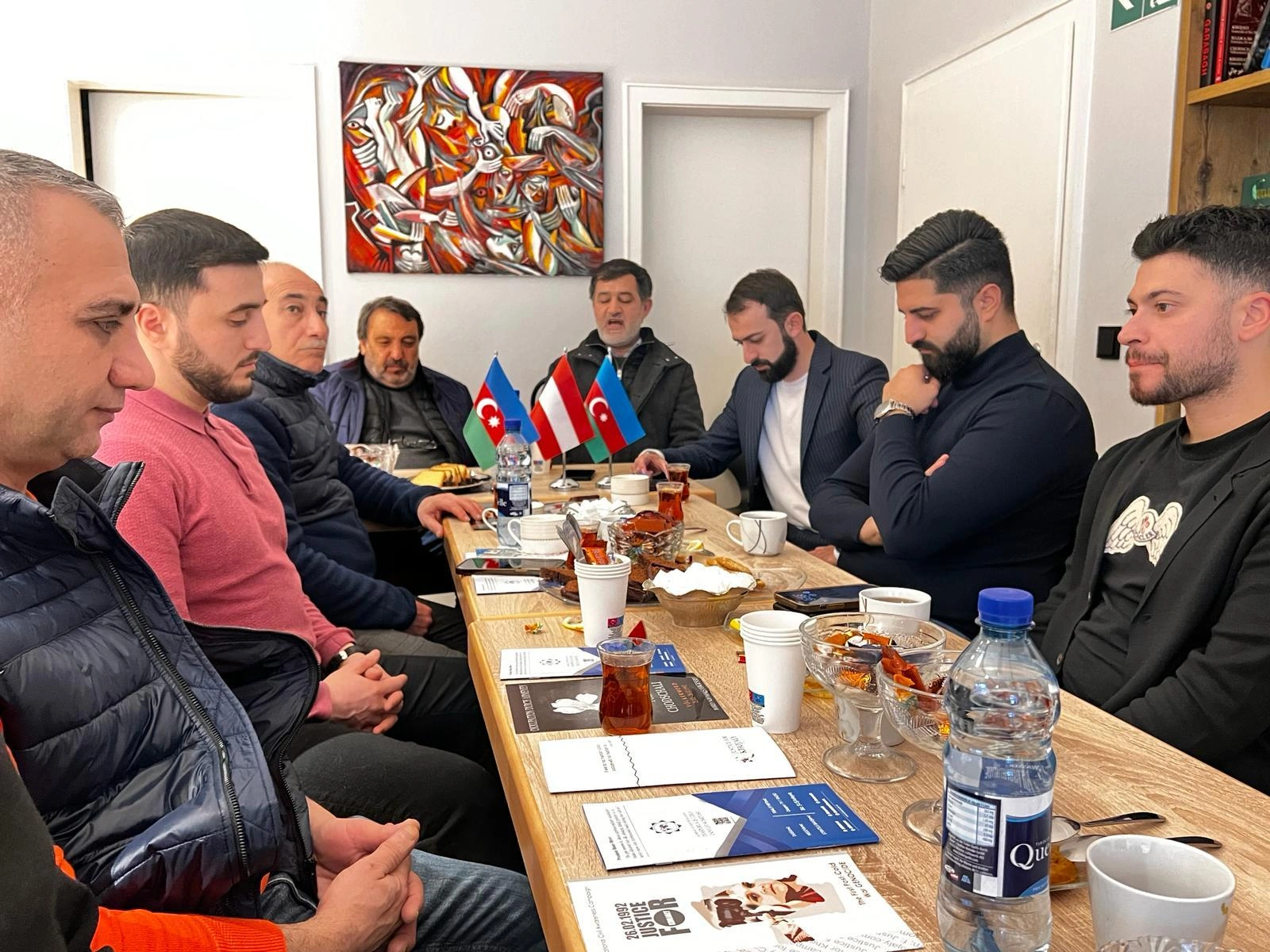 Tədbiri giriş sözü ilə açan Avstriya Azərbaycanlıları Cəmiyyətinin sədri Fərid Əzizov 32 il bundan 1992-ci ildə Ermənilərin vəhşiliklə qətlə yetirdikləri Xocalı qurbanlarının əziz xatirəsinə ehtiram olaraq 1 dəqiqəlik sükut elan edib, eləcə də Azərbaycanın müstəqilliyi və ərazi bütövlüyü uğrunda canından keçən bütün şəhidlərimizə həsr olunmuş nitq söyləyib.