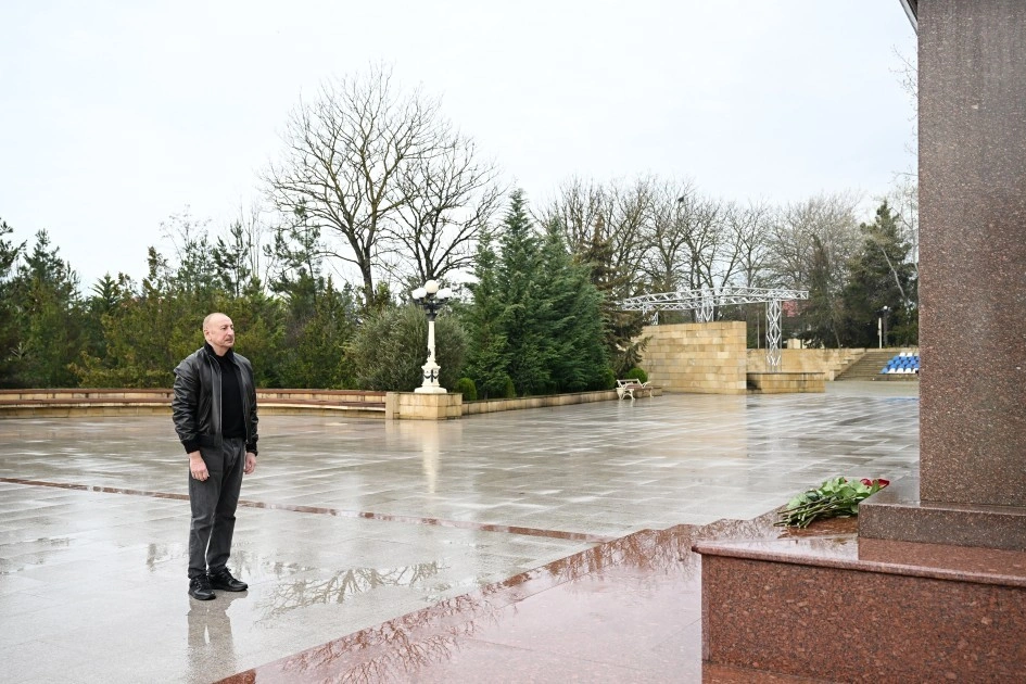 Lent.az xəbər verir ki, dövlət başçısı mərhum prezident Heydər Əliyevin Şamaxı şəhərinin mərkəzində ucaldılmış abidəsini ziyarət edib.