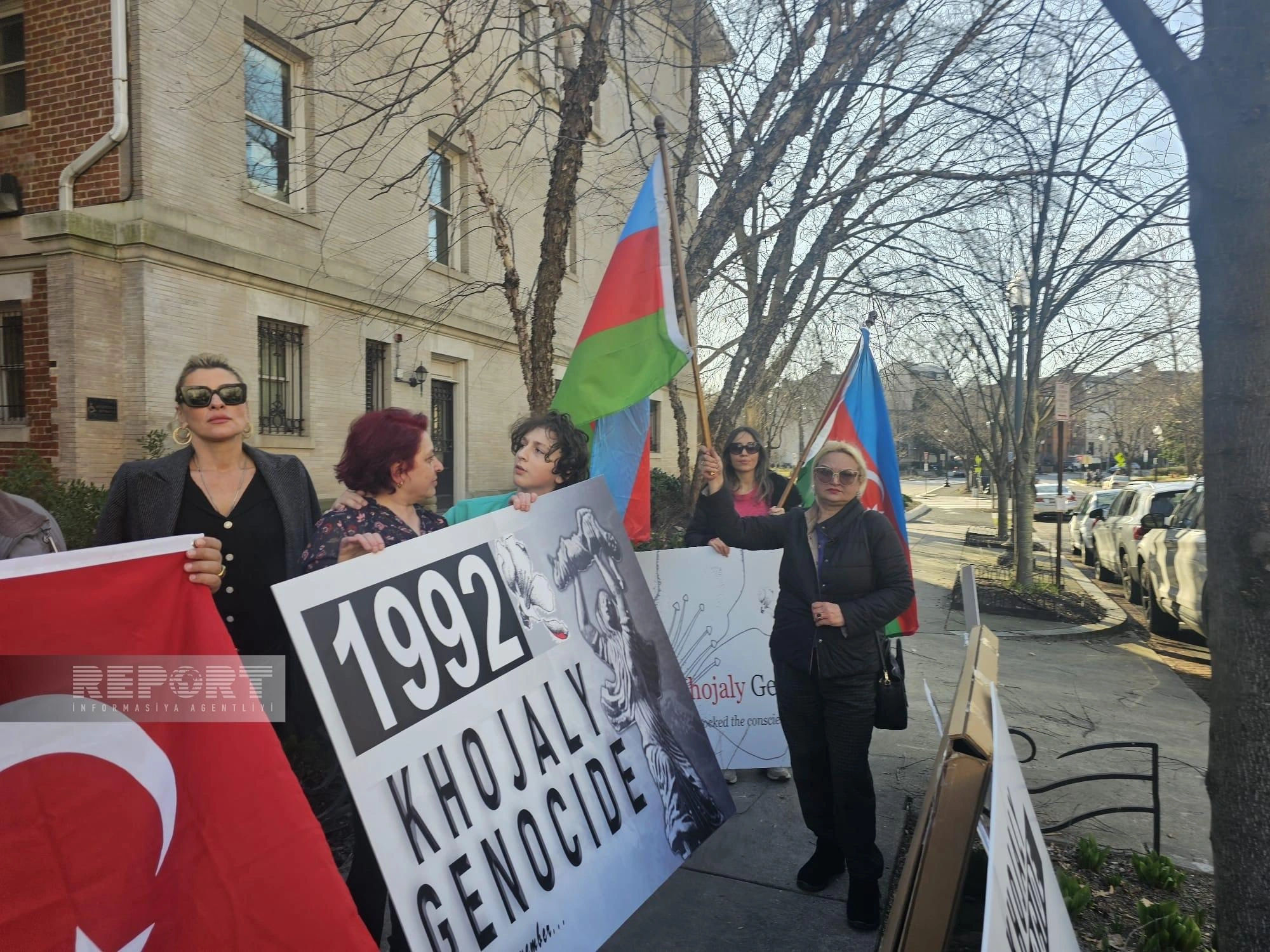 Onlar Ermənistanın Vaşinqtondakı diplomatik missiyasının rəhbərinə müraciətlərində Xocalı faciəsinin səbəbkarlarının qanun qarşısında cavab verməsini tələb edib, “Ermənistana ar olsun!”, “Xocalıya Ədalət” şüarları səsləndiriblər.