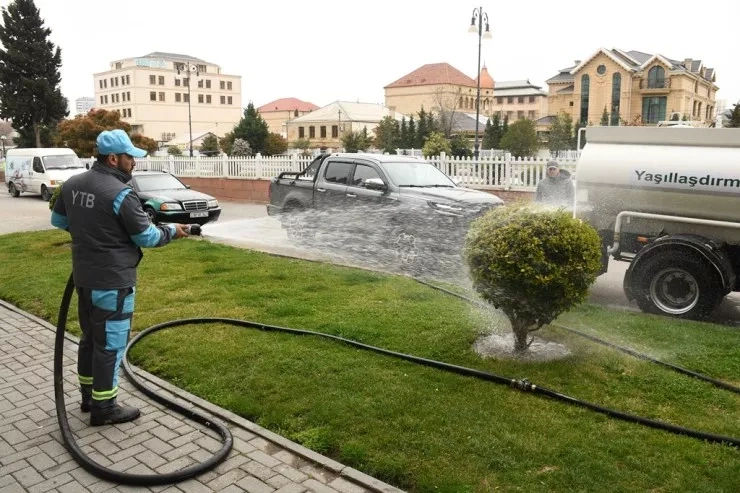 Bakı Şəhər İcra Hakimiyyətinin Mətbuat Xidmətindən Lent.az-a verilən məlumata görə, səhər saatlarından Kommunal təsərrüfat xidmətlərinin texnikası bitki və canlılara zərər verməyən yuyucu maddələrlə əsas küçə və prospektlərin yuyulmasını aparıb. Bu zaman həm də məhəllədaxili və ara yollar da yuyulub.