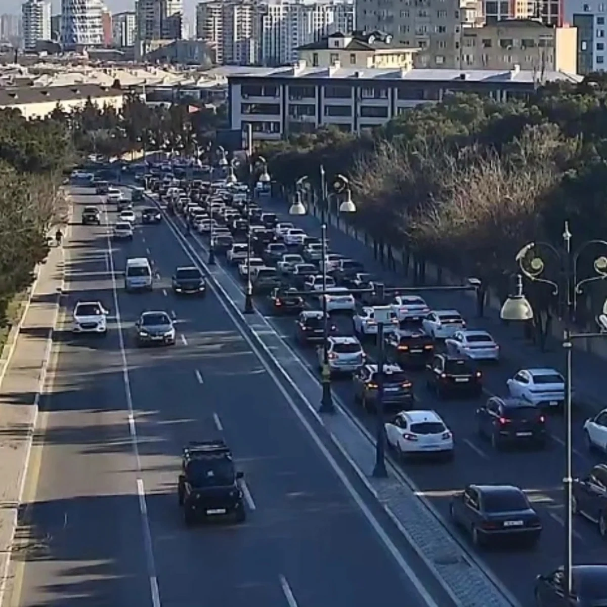14. Tbilisi prospekti, "20 Yanvar" metro stansiyasından mərkəz istiqamətində sıxlıq müşahidə olunur.