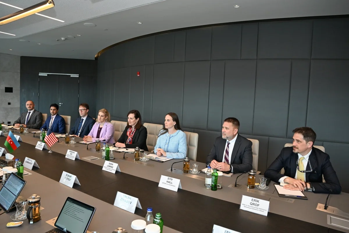 Müzakirələr nazirin ABŞ Dövlət Departamentinin İqtisadi, Enerji və Biznes Məsələləri Bürosunun baş müşaviri xanım Rebekka Neffin və ABŞ-nin Ticarət və İnkişaf Agentliyinin Avropa və Avrasiya üzrə ölkə meneceri xanım Sara Leminqin rəhbərlik etdiyi nümayəndə heyətləri ilə görüşdə baş tutub.