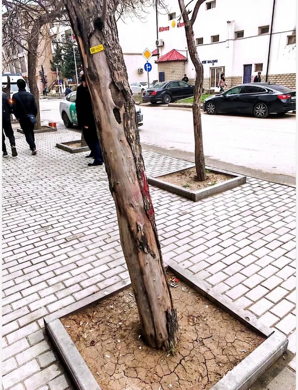 Şikayətdə bildirilir ki, sözügedən ərazidə səkidə yerləşən ağaclar kəsilib, budaqları və yonqar qalıqları isə əraziyə səpələnib.