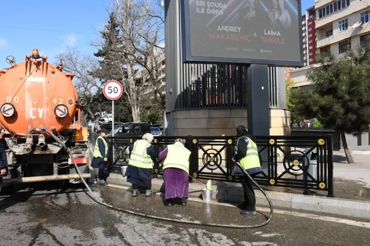 Bakı şəhər İcra Hakimiyyətinin mətbuat xidmətindən Lent.az-a verilən məlumata görə, səhər saatlarından Bakı Şəhər İcra Hakimiyyəti Kommunal təsərrüfat xidmətlərinin texnikası vasitəsilə həm şəhər mərkəzində, həm də qəsəbələrdəki prospekt və küçələri canlılara zərər verməyən yuyucu maddələrlə yuyulub, yol kənarlarında əsaslı təmizlik işləri görülüb.