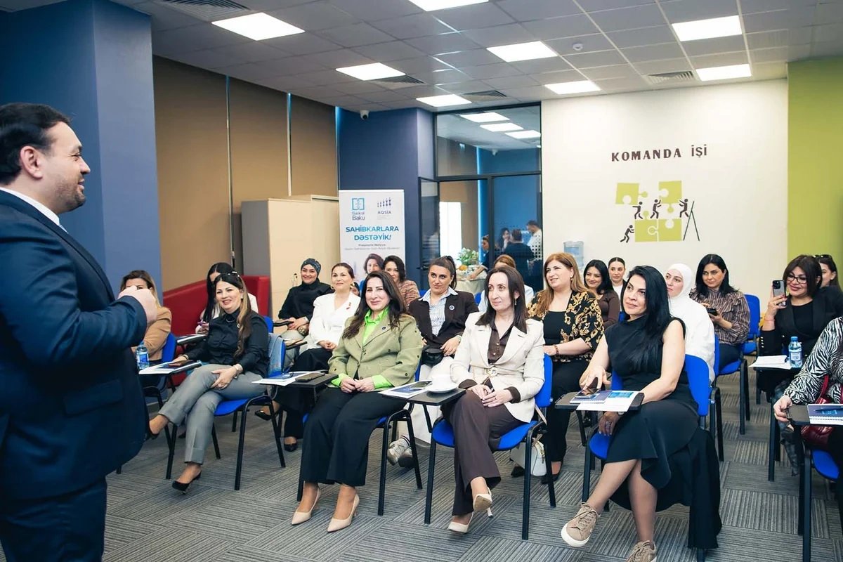 "25 Aprel – Sahibkarlar Günü" ərəfəsində "Bank of Baku"nun təşkilatçılığı və Azərbaycanda Qadın Sahibkarlığının İnkişafı Assosiasiyasının (AQSİA) dəstəyi ilə keçirilən təlimdə 20-dən çox sahibkar qadın iştirak edib.