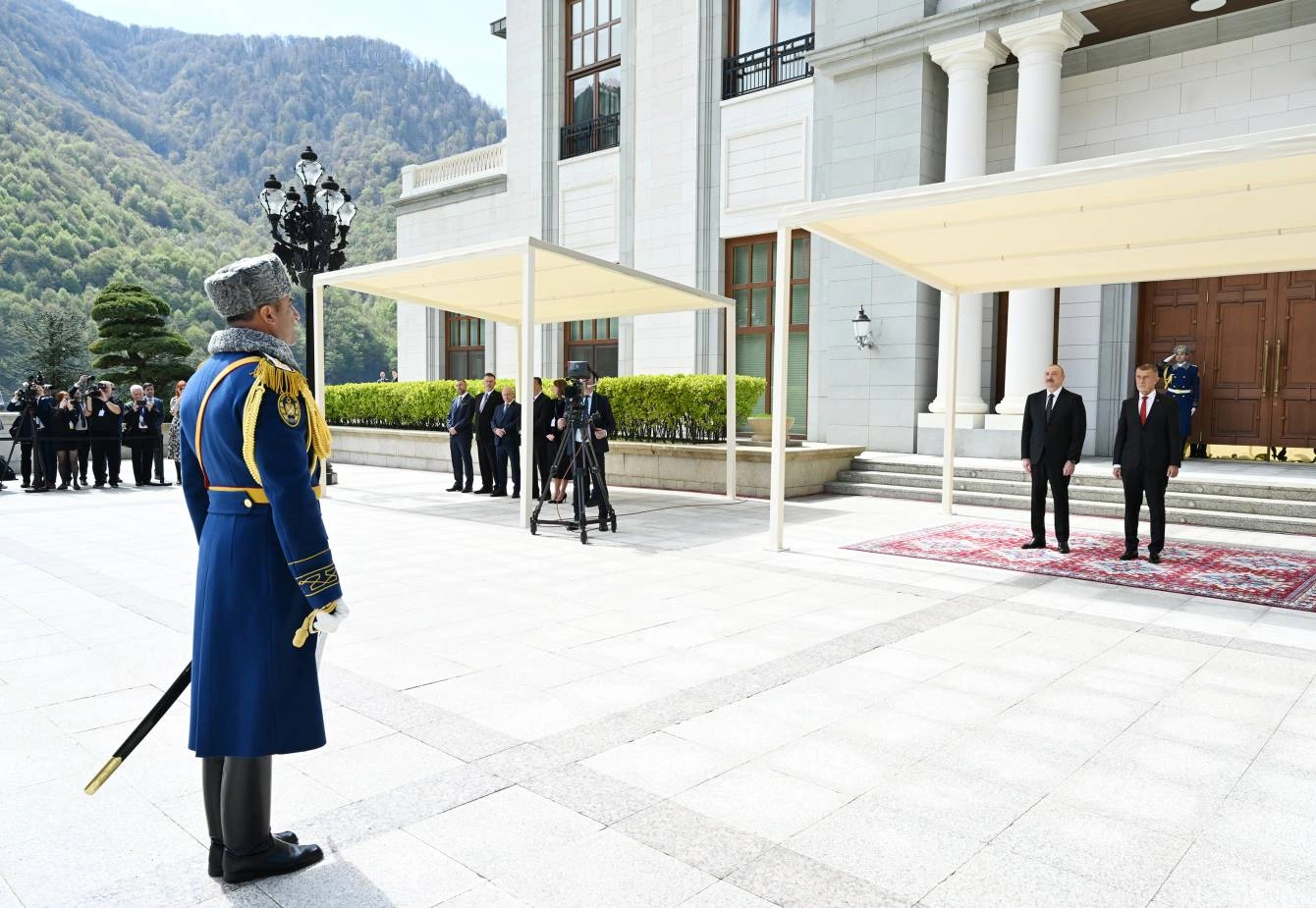 Fəxri qarovul dəstəsi hərbi marşın sədaları altında Azərbaycan Prezidenti İlham Əliyevin və Çexiyanın Baş naziri Andrey Babişin qarşısından keçib.