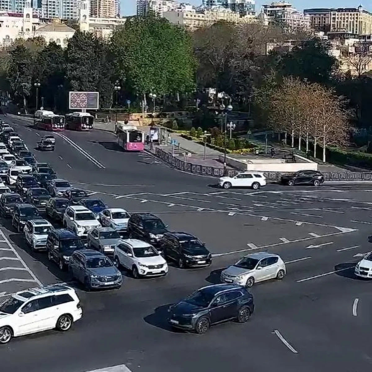 13. 8 Noyabr prospekti, Süleyman Əhmədov küçəsi ilə kəsişmədən mərkəz istiqamətində sıxlıq müşahidə olunur.