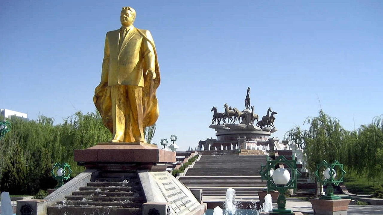 Bu güc nümayişinin ən qeyri-real tərəfi, paytaxt Aşqabadın mərkəzində ucaldılmış və gün ərzində öz ətrafında fırlanaraq günəşi izləyən 12 metr hündürlüyündə qızıl heykəl idi.