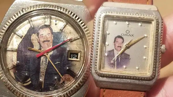 Səddam Hüseyn (İraq) – Lüks İsveçrə saatları və qədim Babil kərpicləri. Devrilmiş İraq lideri Səddam Hüseyn özünü yalnız ictimai meydanlardakı soyuq, nəhəng heykəllərlə məhdudlaşdırmayanlardan biri idi. 1970-ci və 80-ci illərdə o, Universal Geneve və Omax kimi lüks İsveçrə brendlərindən qızılı rəngli qol saatları sifariş edib və hər birinin siferblatında onun portreti təsvir olunub.
