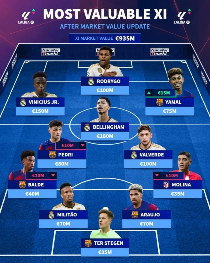 Transfermarkt İspaniya La Liqasının ən bahalı oyunçularından ibarət simvolik komandanı təqdim edib.