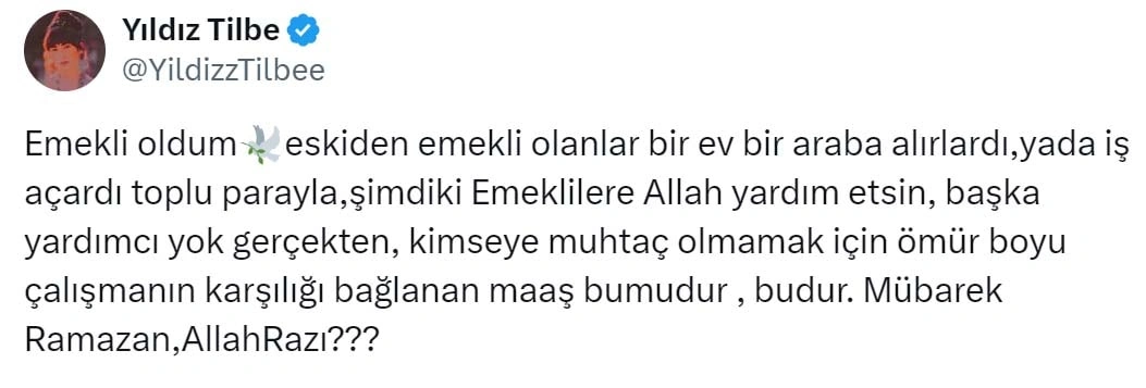 Türkiyəli məşhur müğənni Yıldız Tilbe sosial media hesabından təqaüdə çıxdığını açıqlayıb.