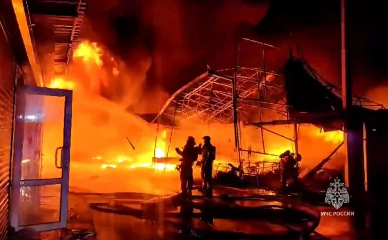 Rusiyanın Rostov vilayətinin ən böyük geyim bazarı "Temernik" yanır.