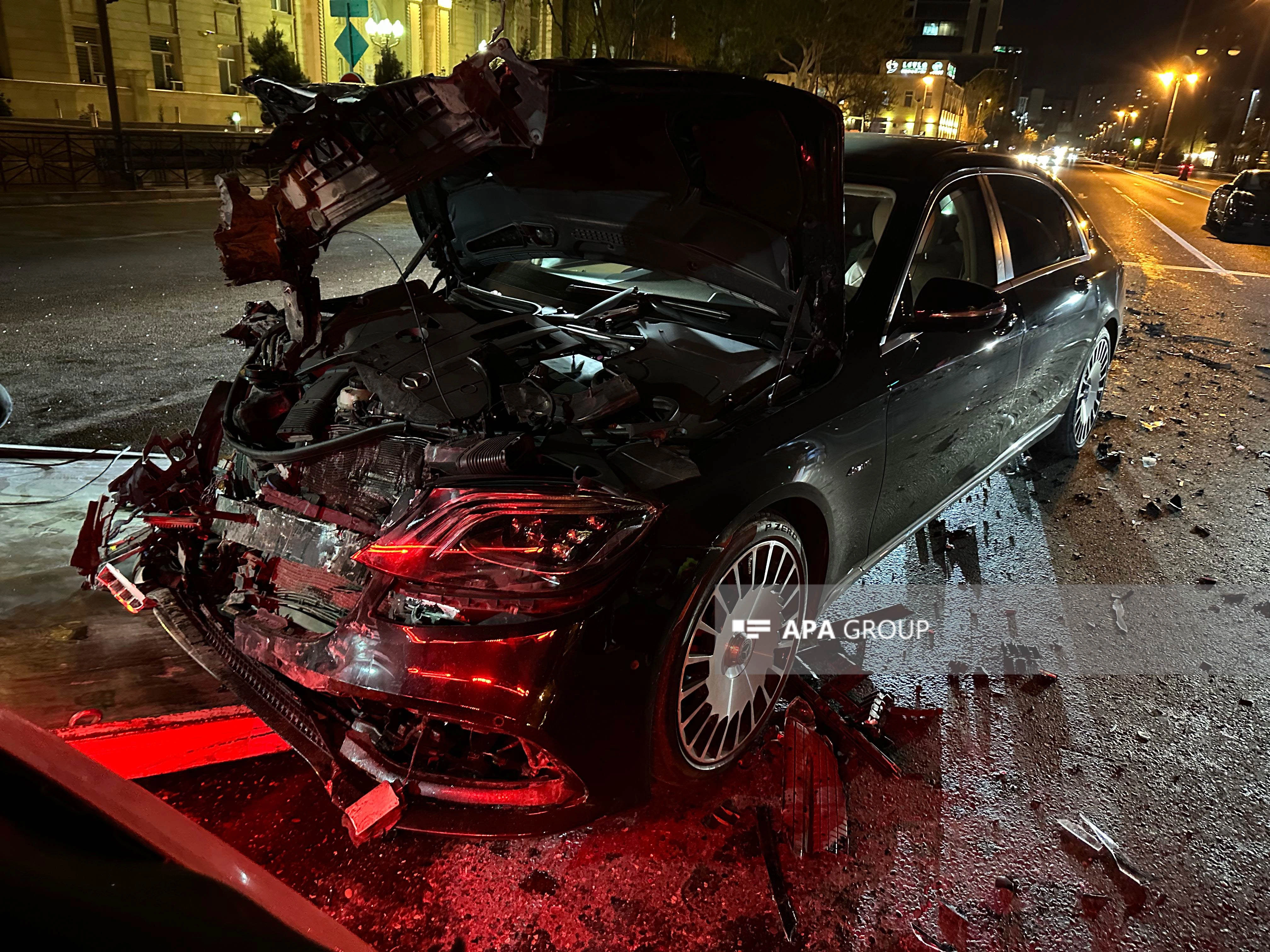 Zərbənin təsirindən “Maybach” deformasiyaya uğrayıb, “Leap Motors”da olan sərnişin xanım xəsarət alıb.