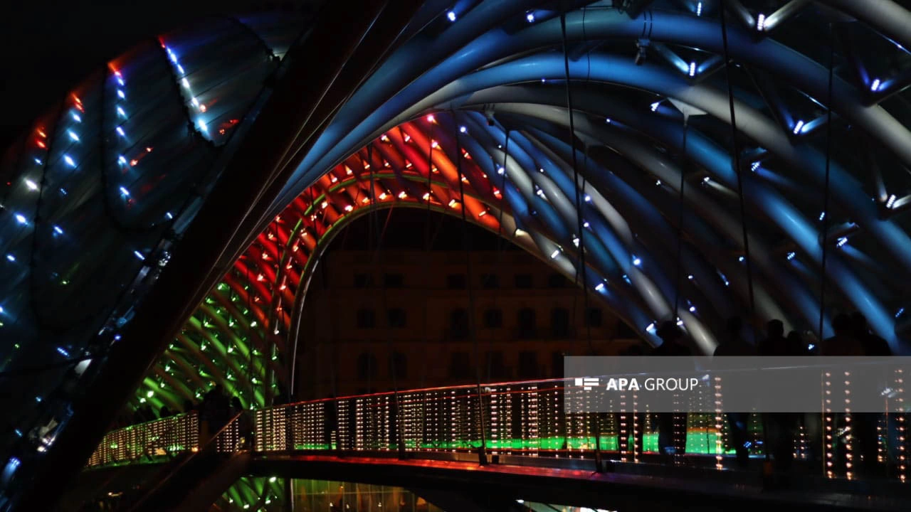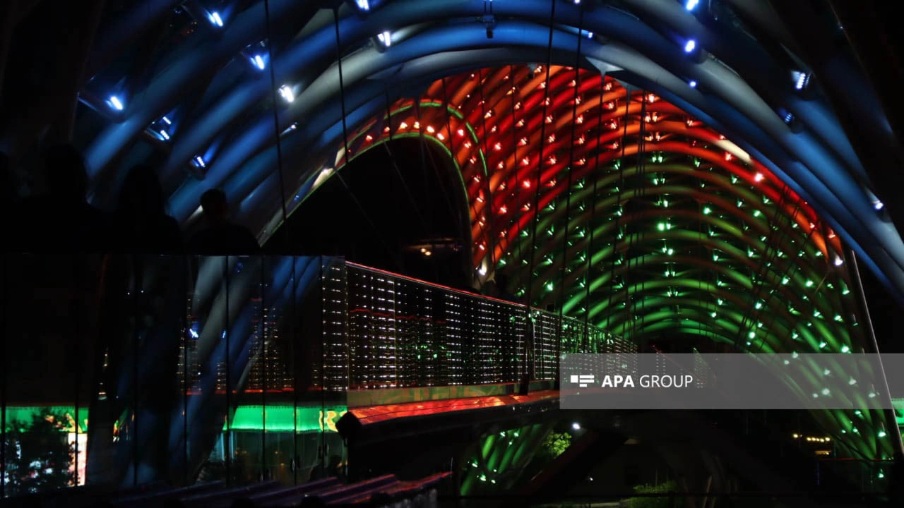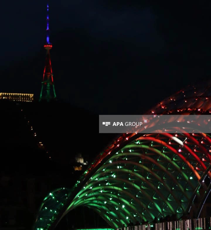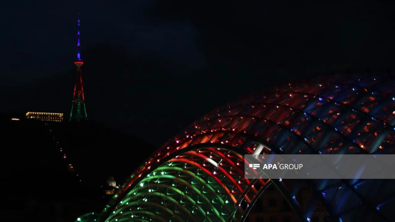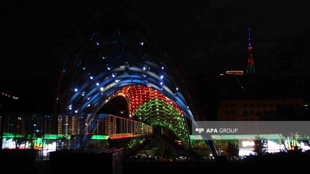 Tbilisinin ən yüksək nöqtəsi sayılan televiziya qülləsi, həmçinin Kür çayı üzərində yerləşən və şəhərin simvollarından olan “Sülh körpüsü” Azərbaycan bayrağının rəngləri ilə işıqlandırılıb.
