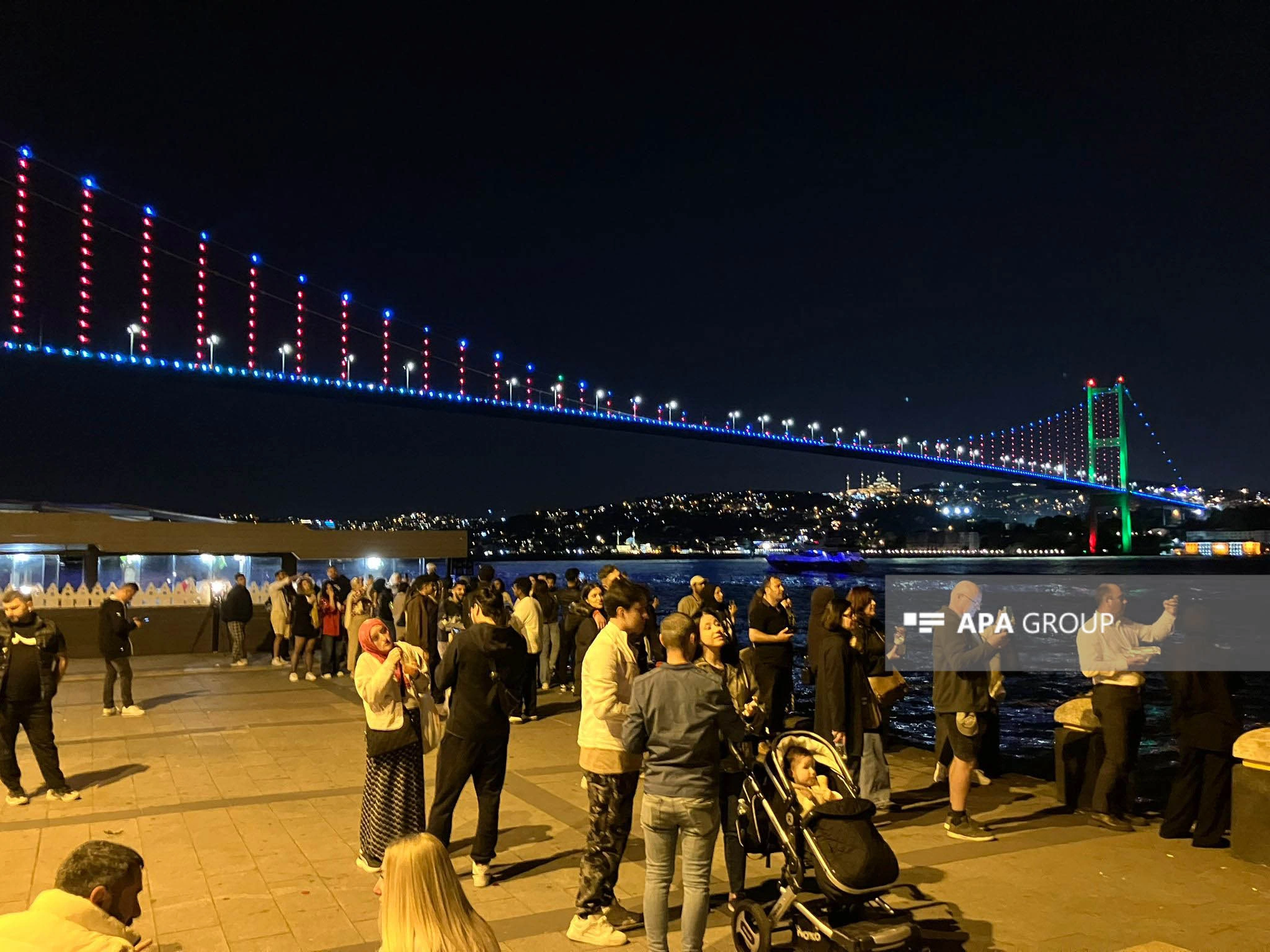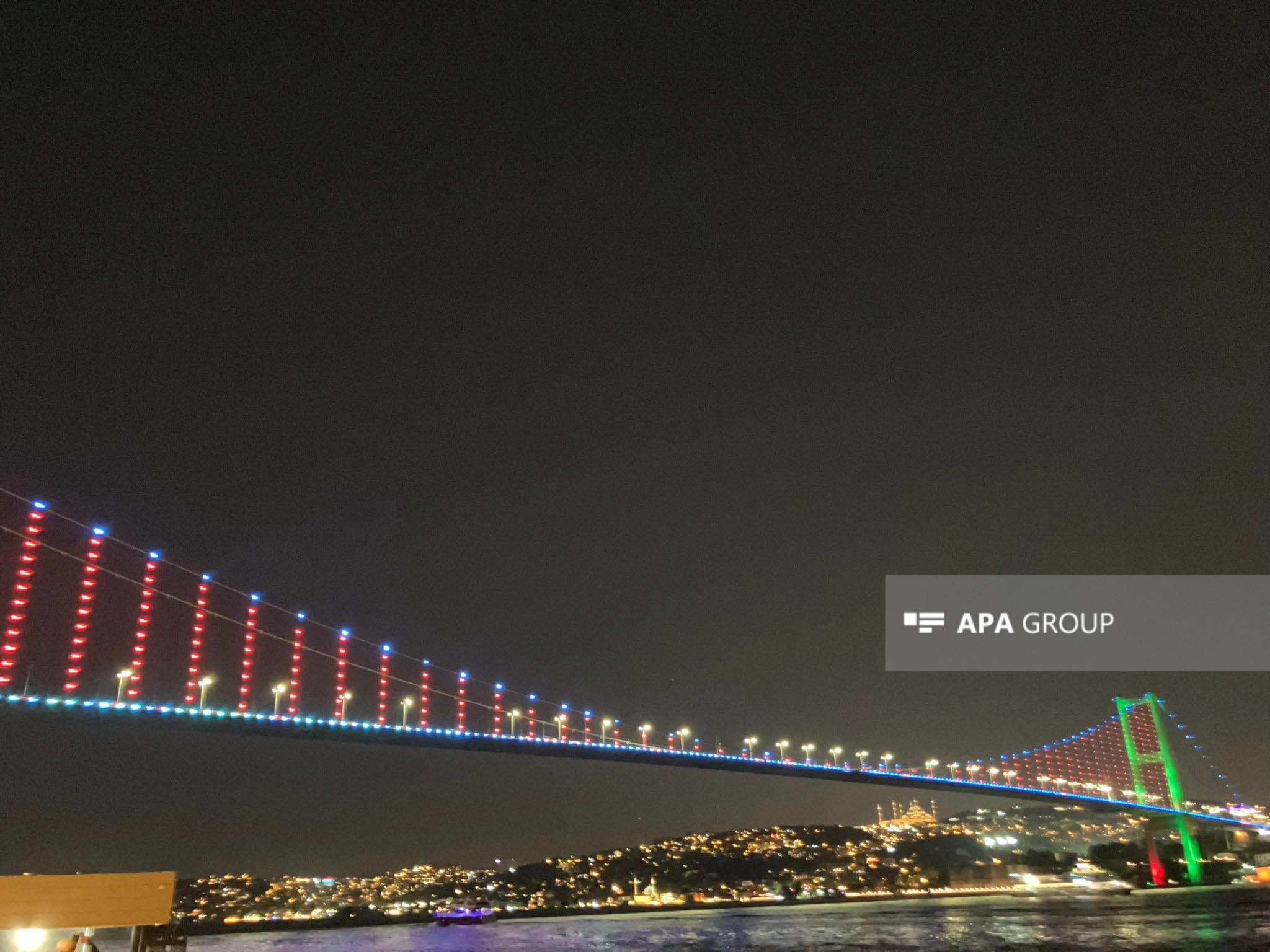 İstanbulun üç körpüsü 28 May - Müstəqillik Günü münasibətilə Azərbaycan bayrağının rəngləri ilə işıqlandırılıb.