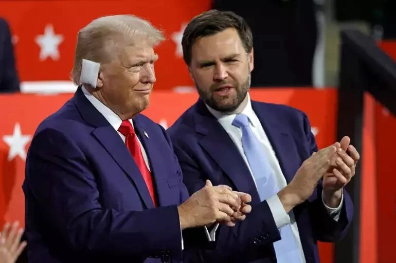 Konqres iştirakçıları Trampı alqışlarla qarşılayıblar. Qulağı sarğılı vəziyyətdə xalqın qarşısına çıxan Trampı elan etdiyi vitse-prezidentliyə namizəd Ceyms Deyvid Vens müşayiət edib.