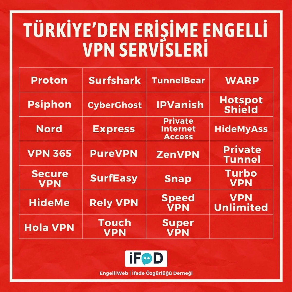 Sosial şəbəkədə Türkiyədə bloklanan VPN xidmətlərinin siyahısı paylaşılıb.