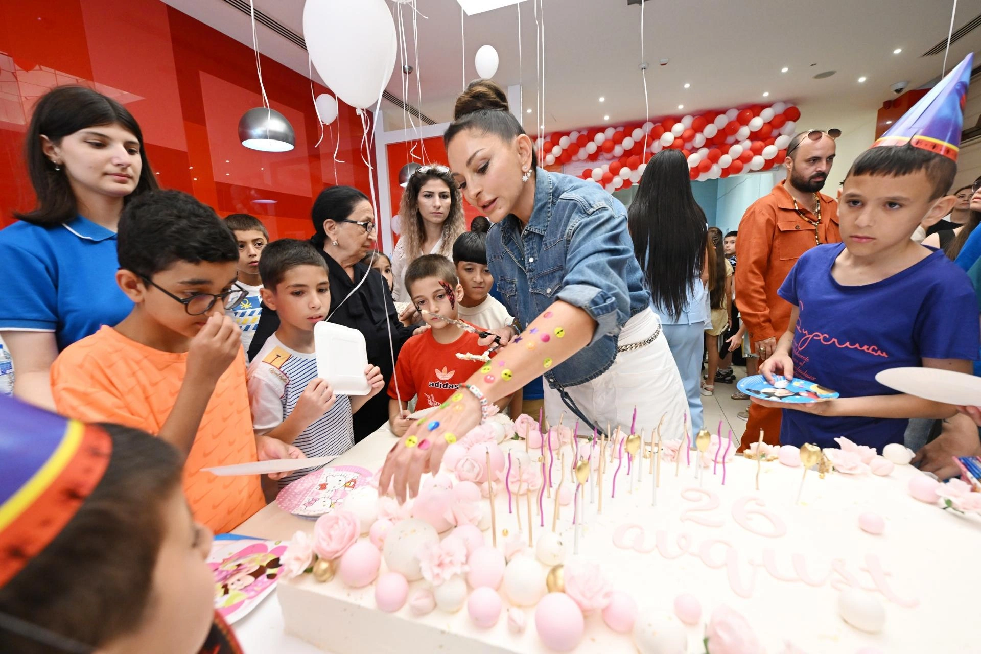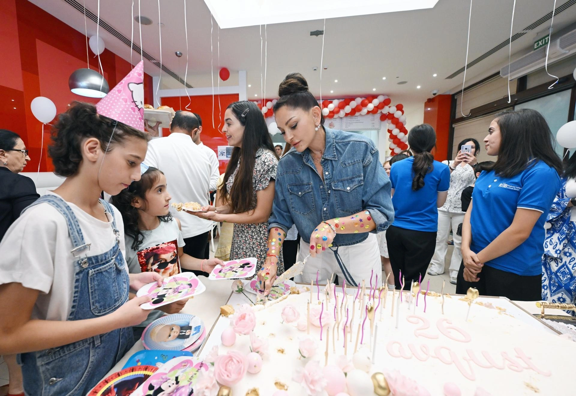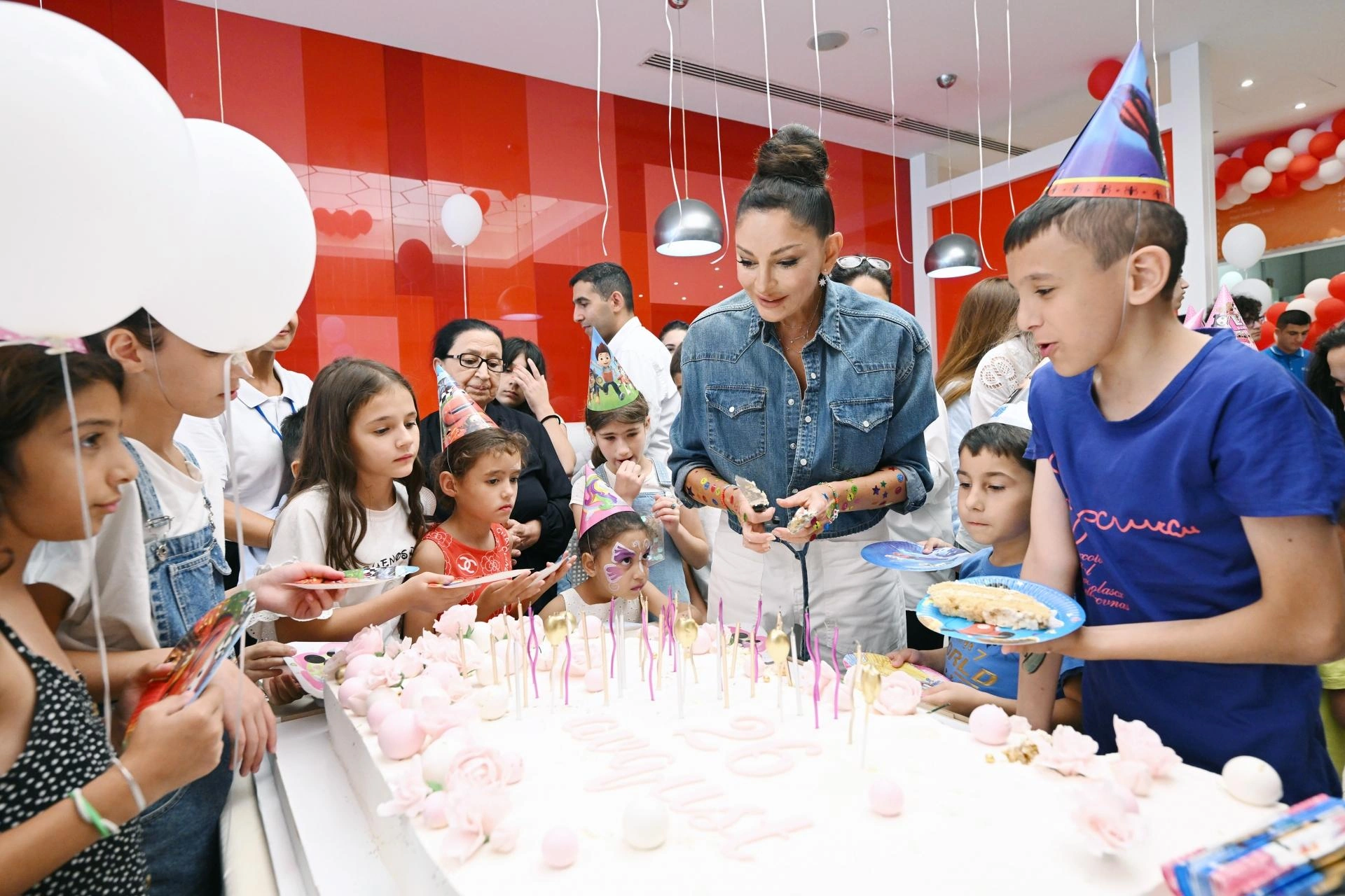 Birinci xanım Mehriban Əliyeva bu gün doğum günü olan uşaqlar üçün tort kəsərək onlara təqdim edib.