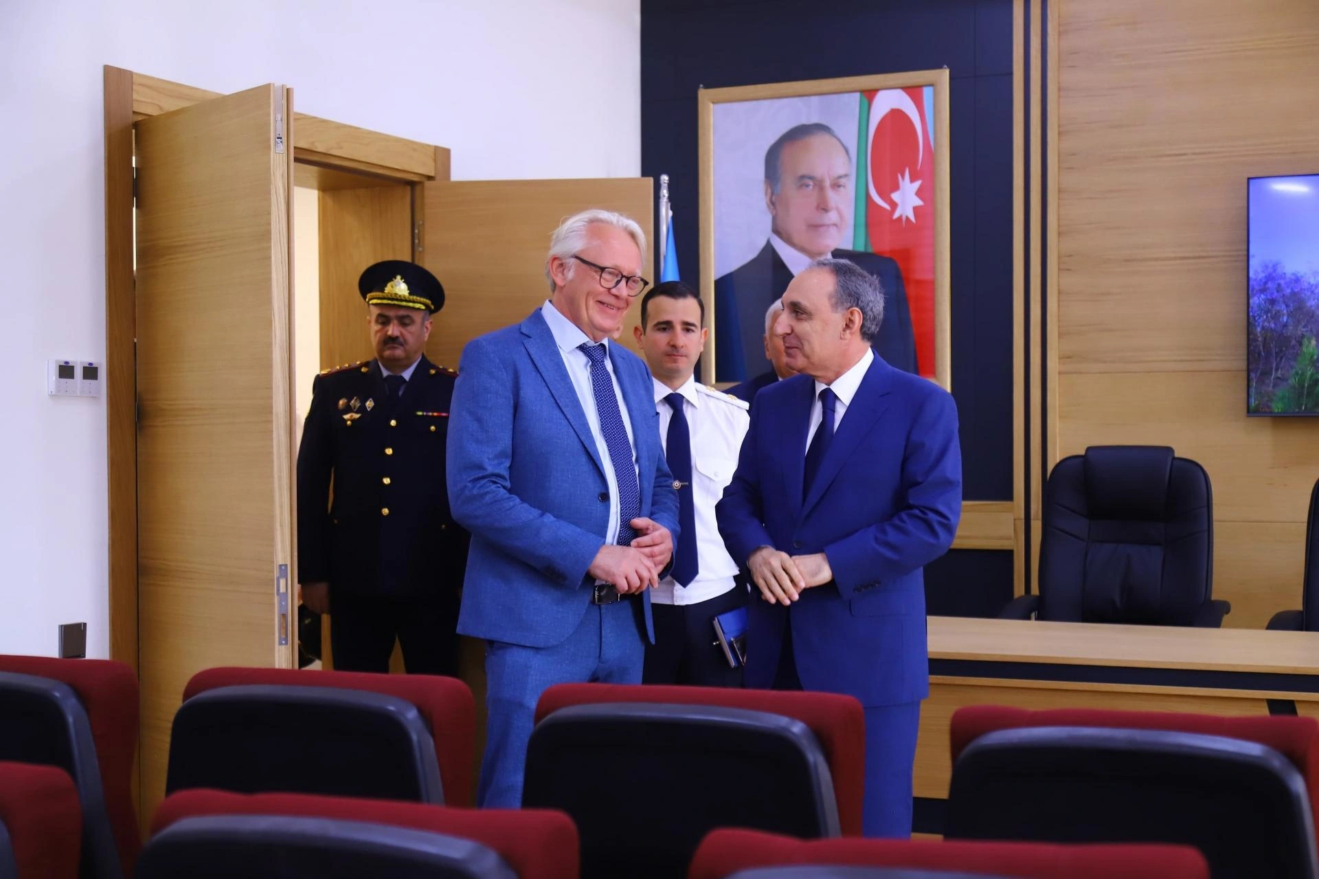Baş prokurorluğun rəhbərliyinin də iştirak etdiyi tədbirə, həmçinin, digər dövlət və hüquq mühafizə orqanlarının əməkdaşları qatılıb. Əvvəlcə mərasim iştirakçıları yeni inzibati binanın foyesində ulu öndər Heydər Əliyevin büstü önünə gül dəstələri qoyaraq, dahi insanın unudulmaz xatirəsinə dərin hörmət və ehtiramlarını bildirib.