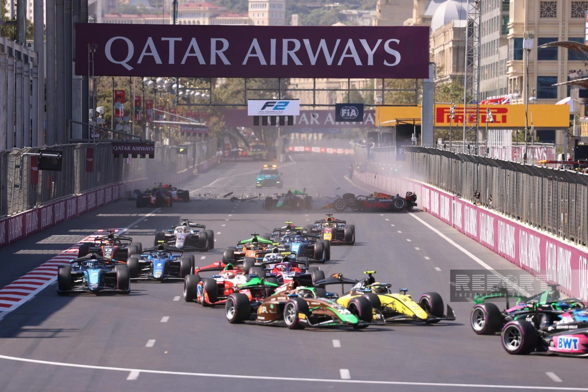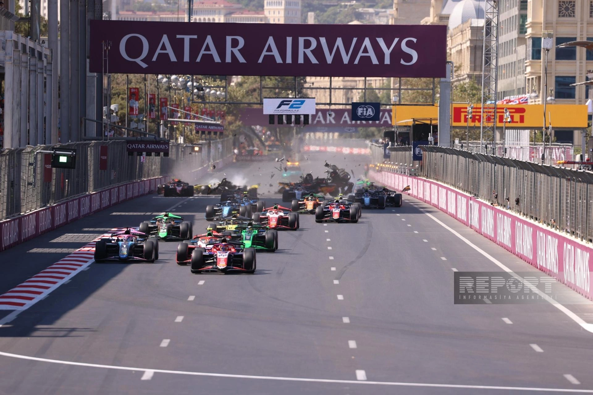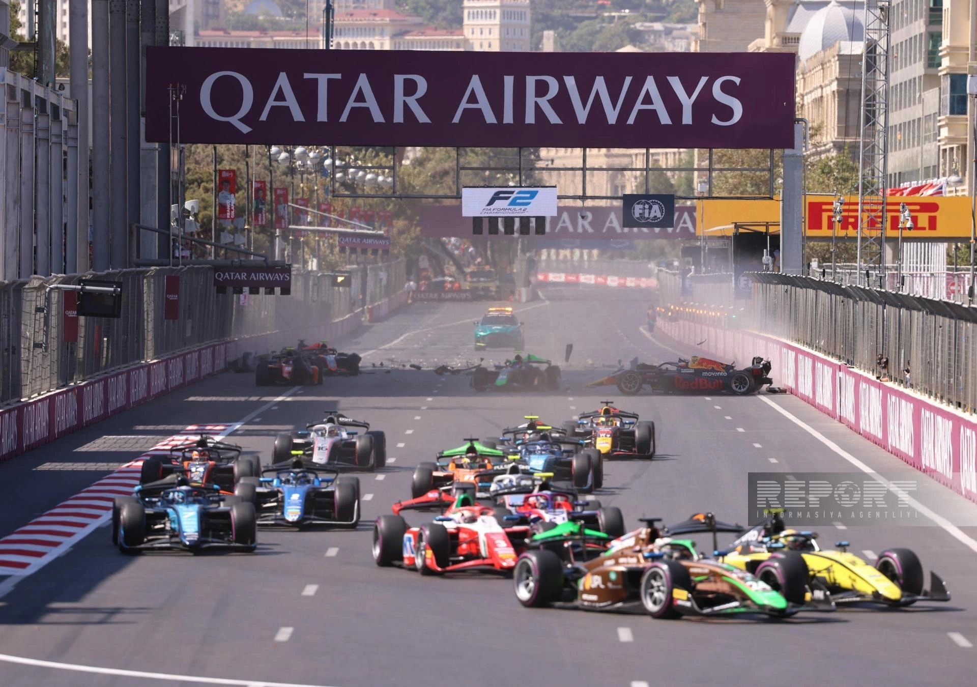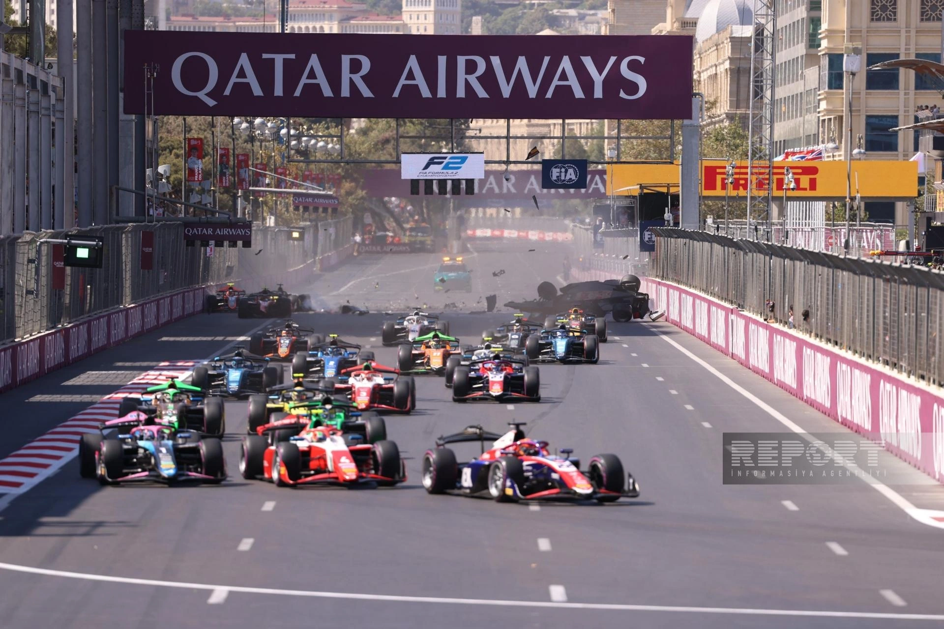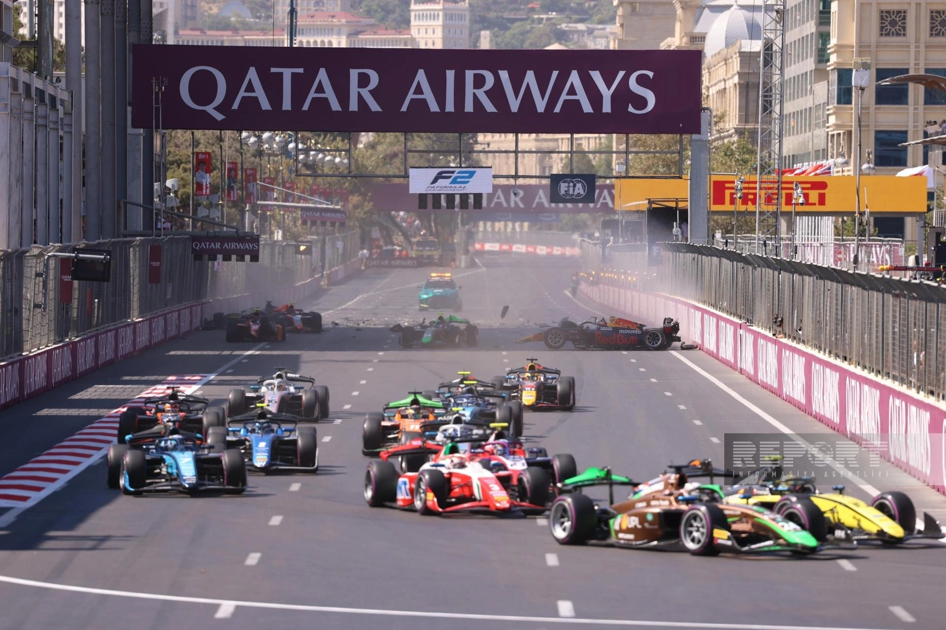 "Report"un məlumatına görə, əsas yarışın startında beş bolid bir-birinə çırpılıb.