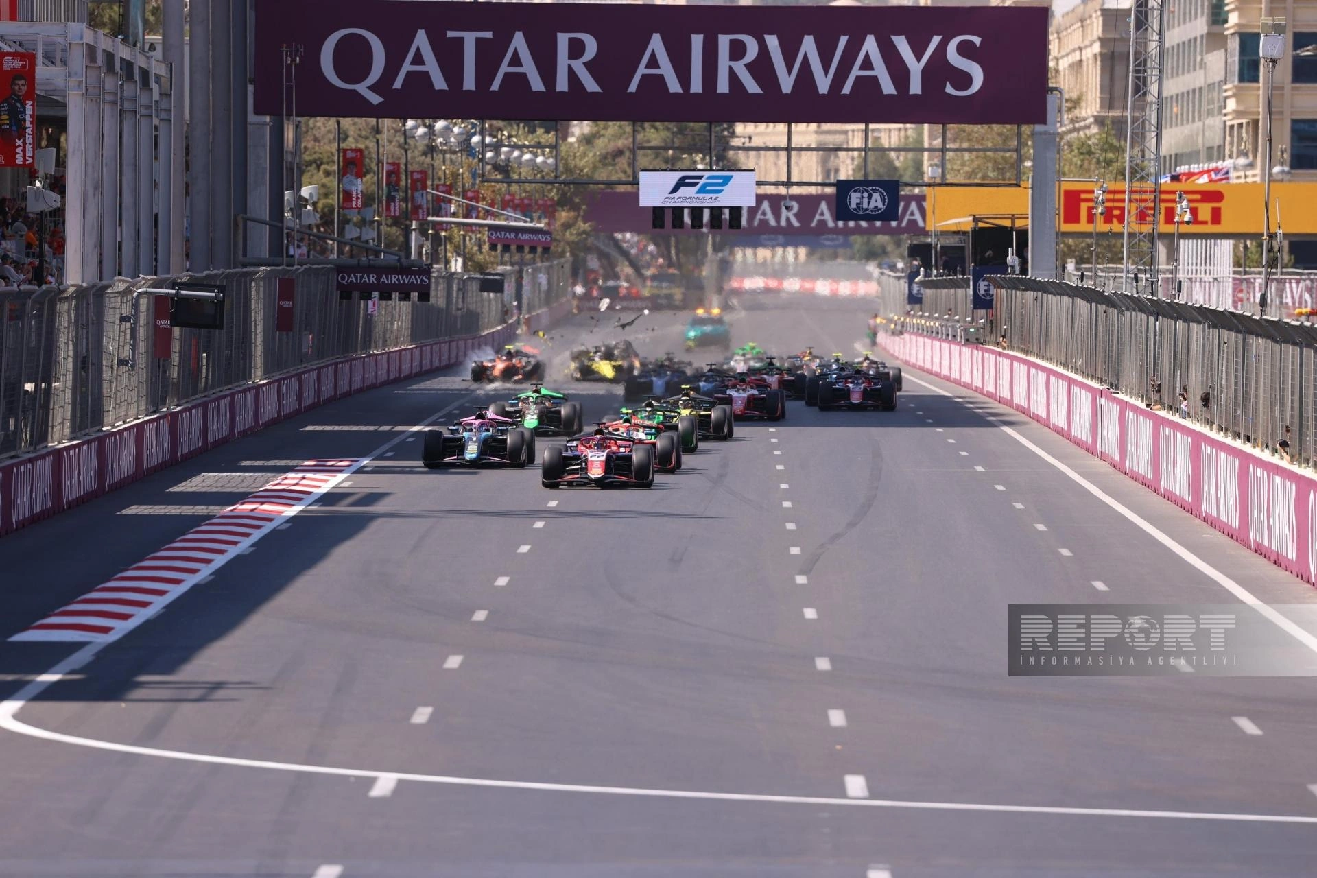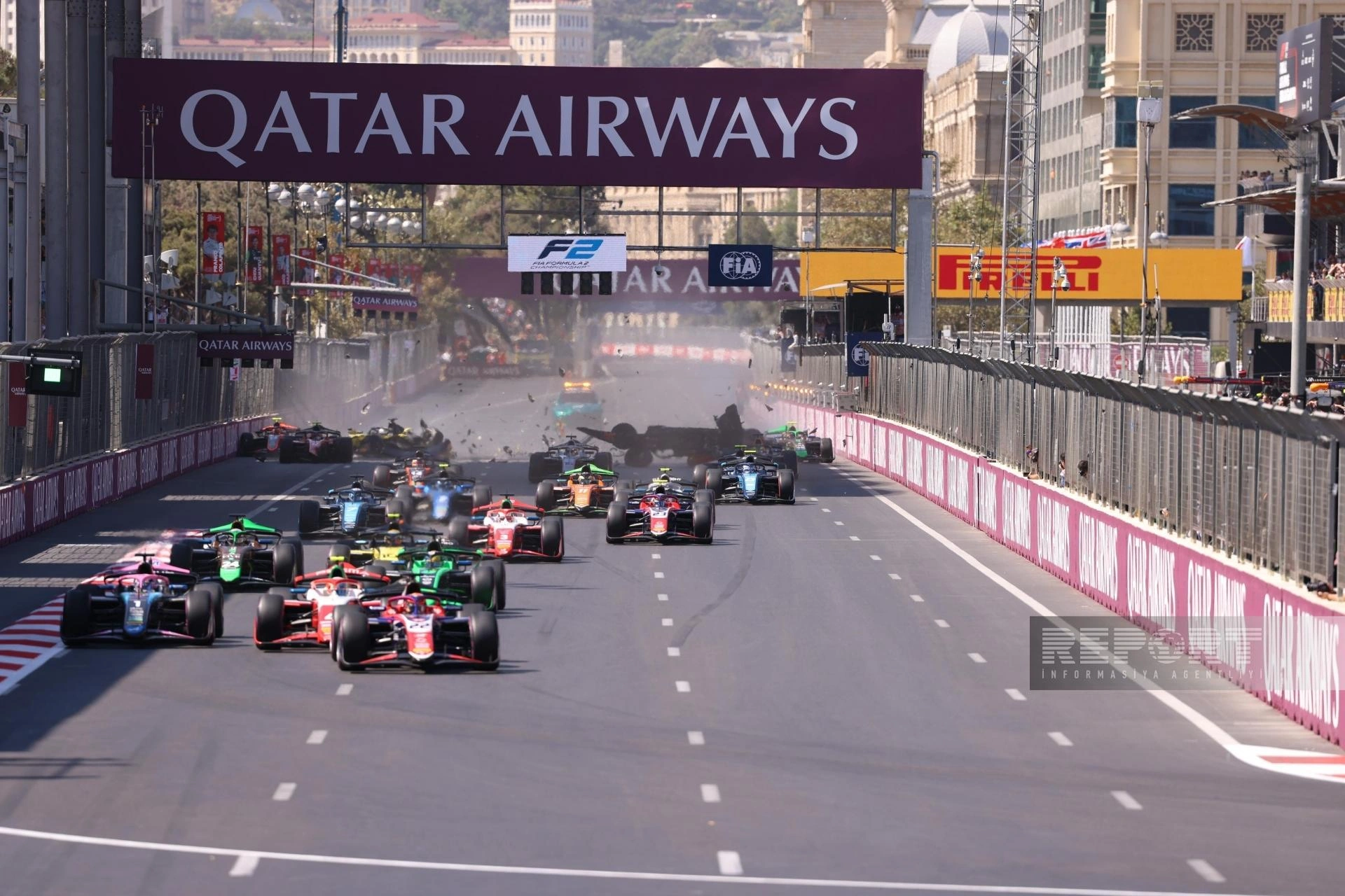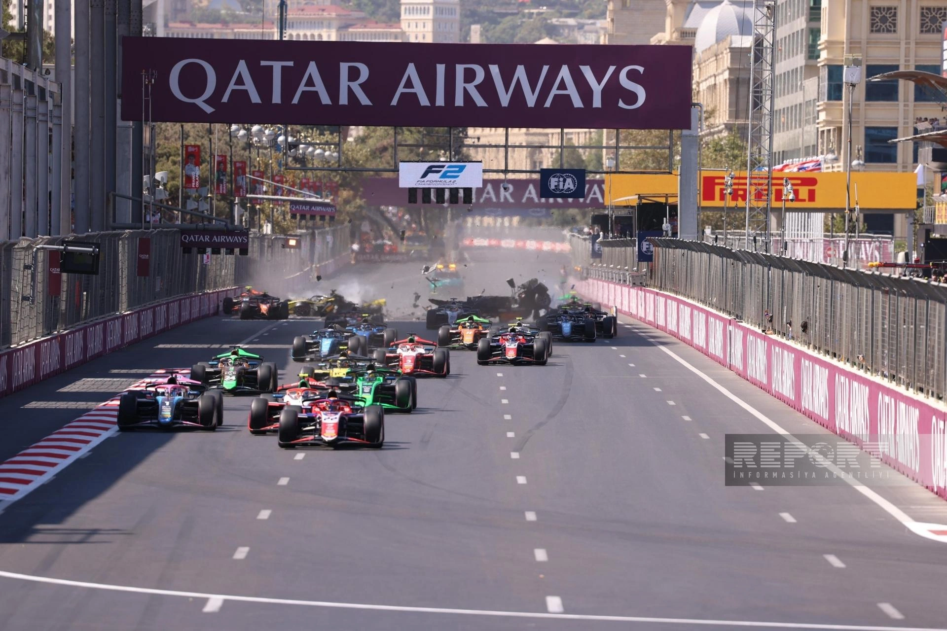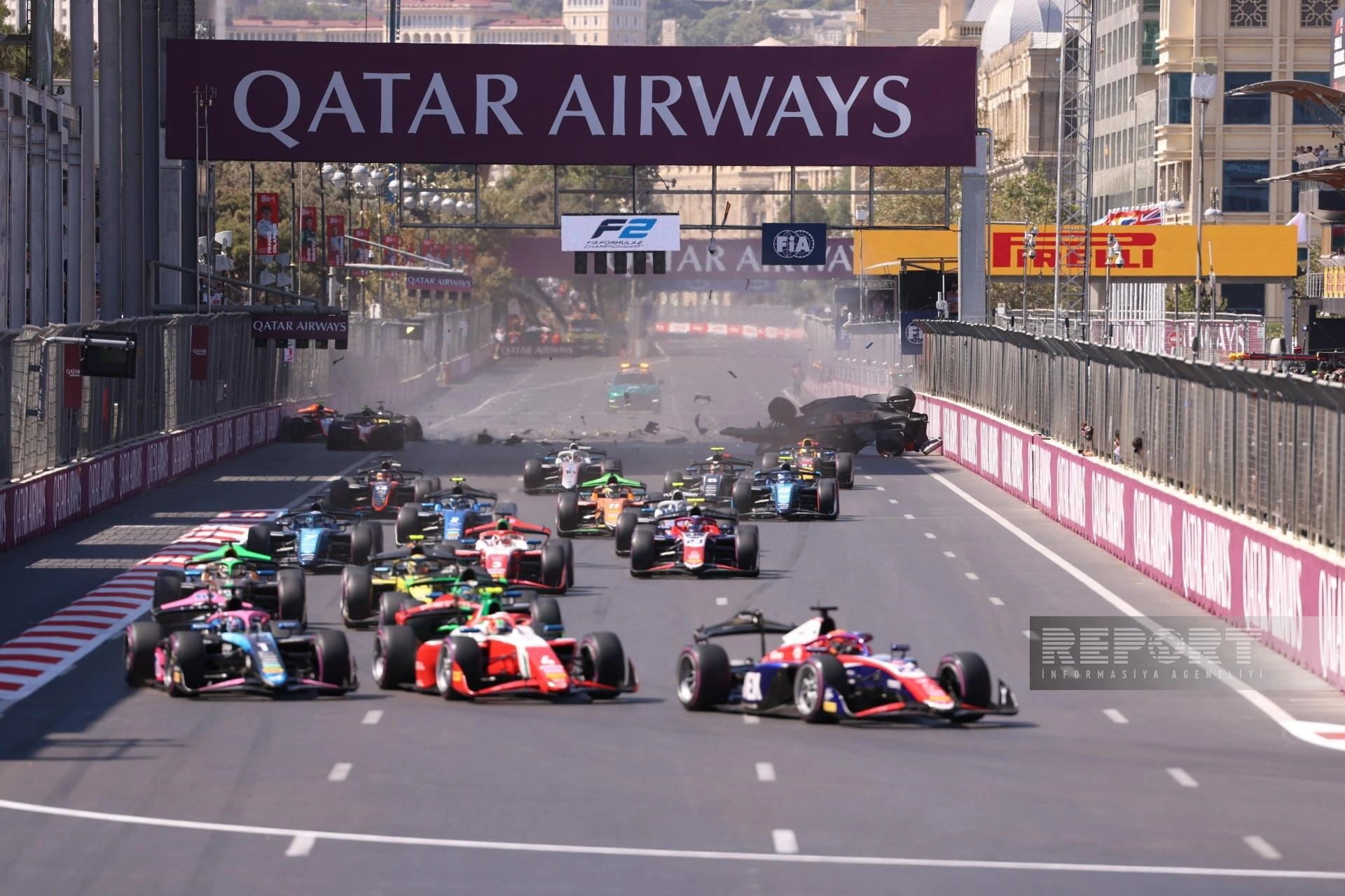 "Report"un məlumatına görə, əsas yarışın startında beş bolid bir-birinə çırpılıb.