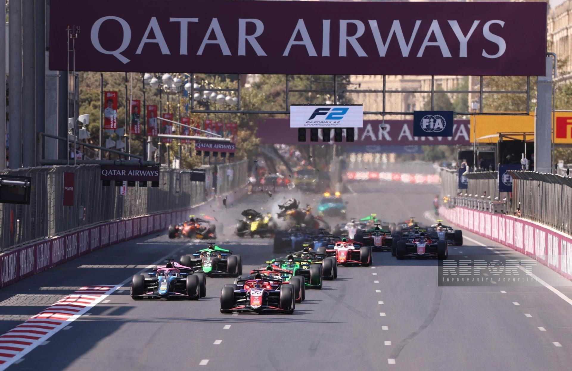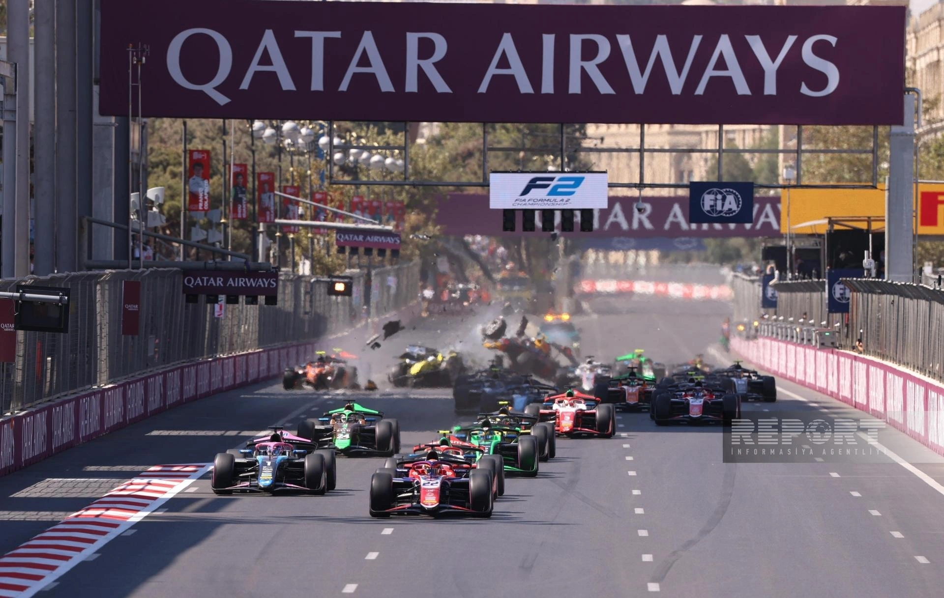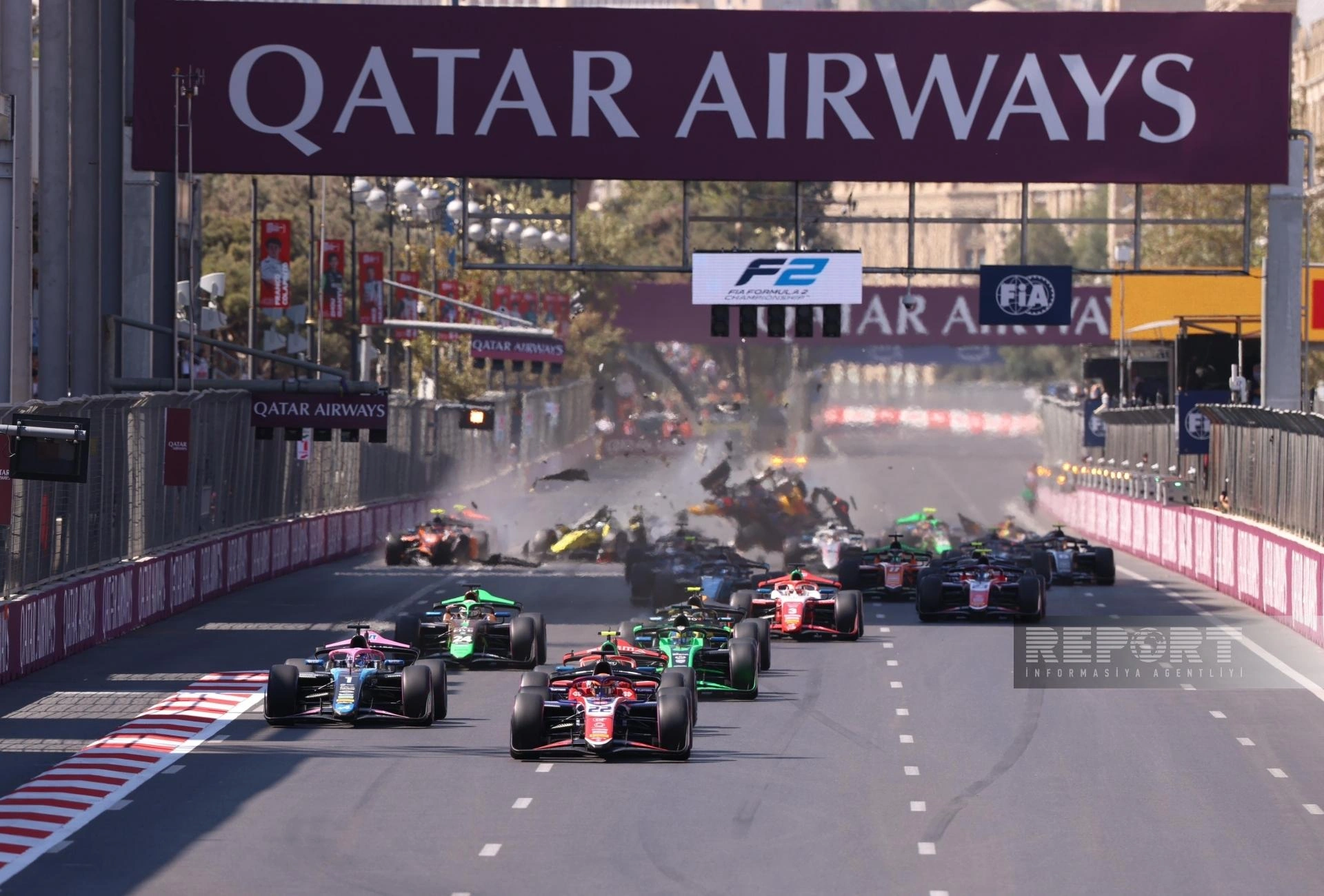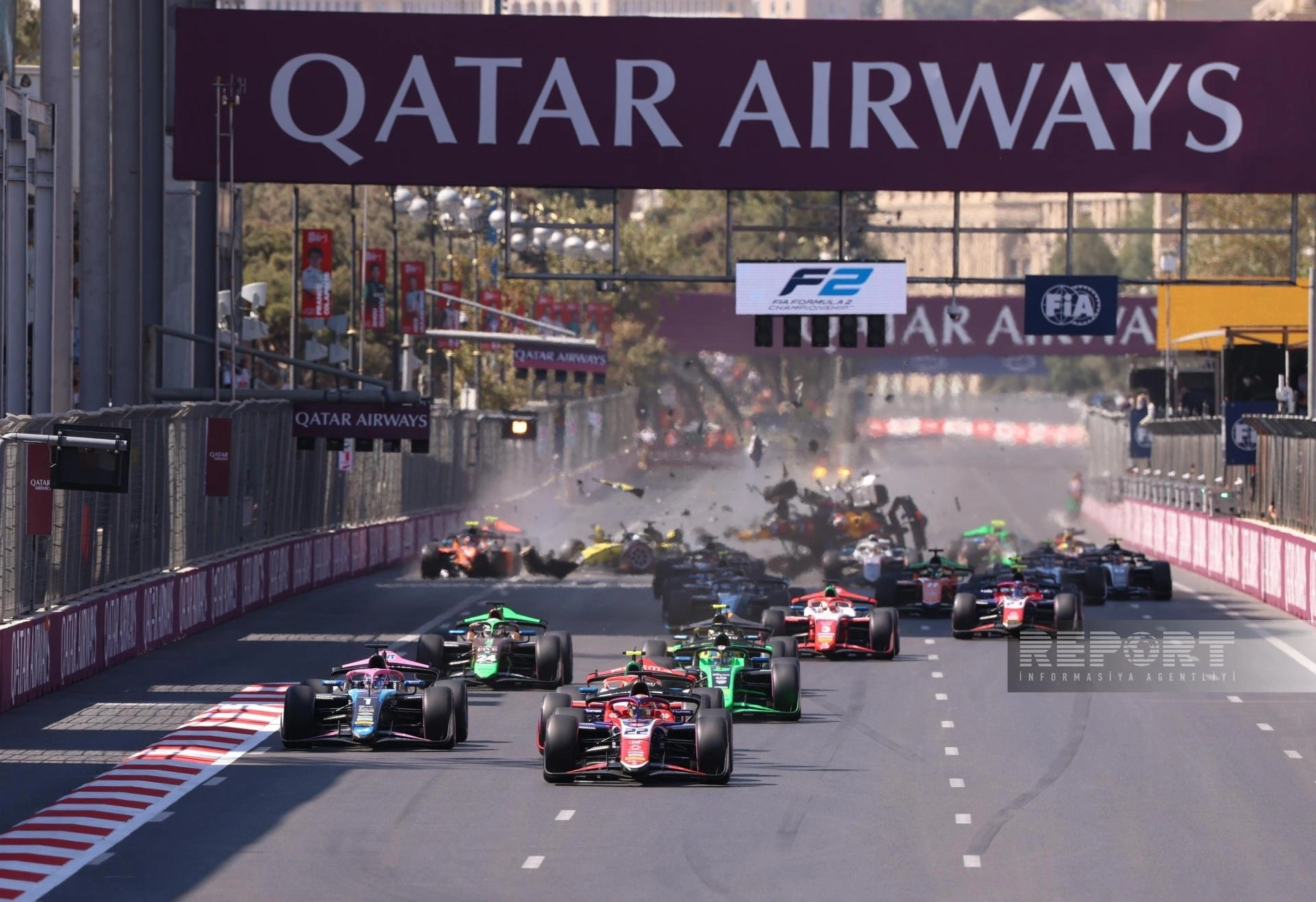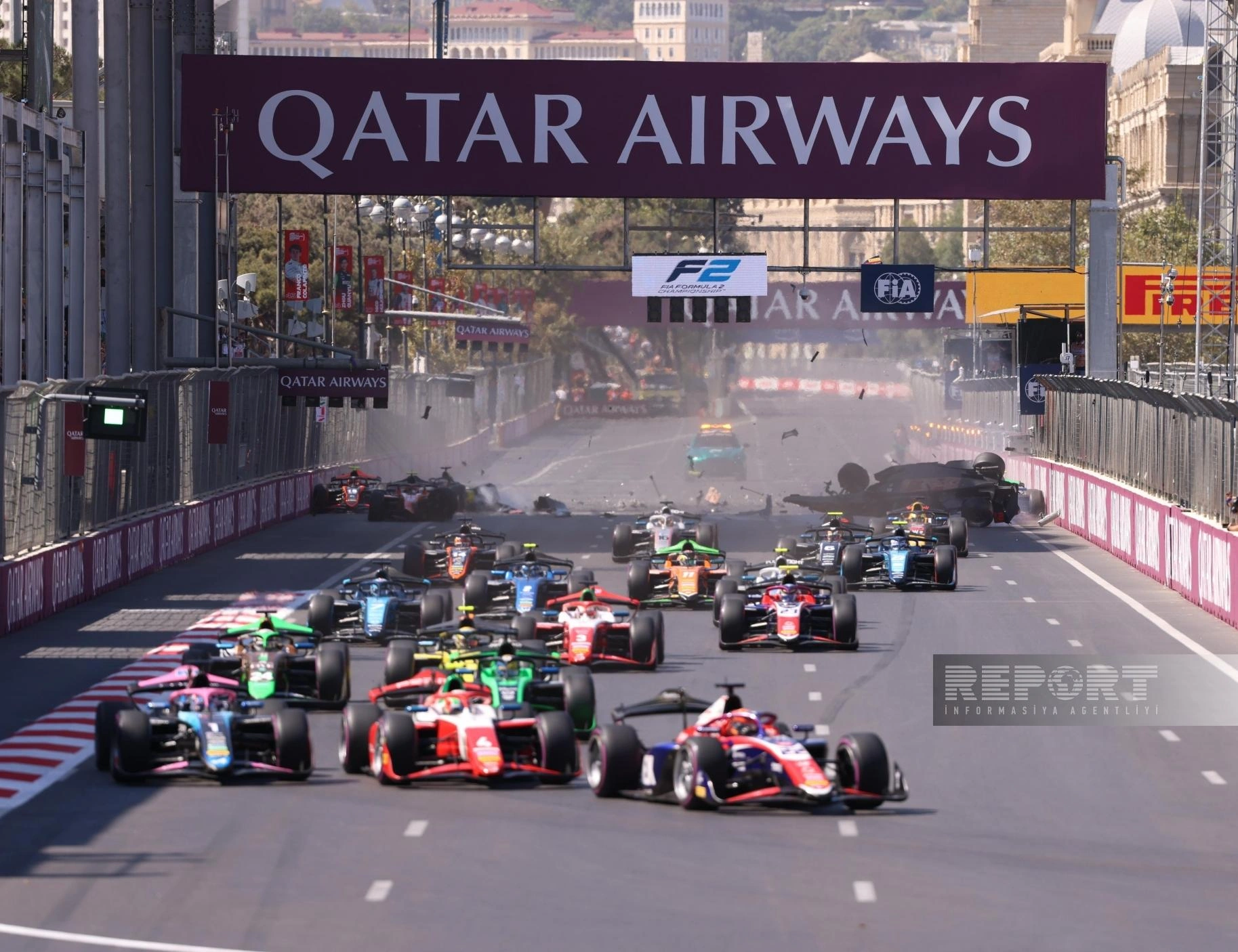"Report"un məlumatına görə, əsas yarışın startında beş bolid bir-birinə çırpılıb.