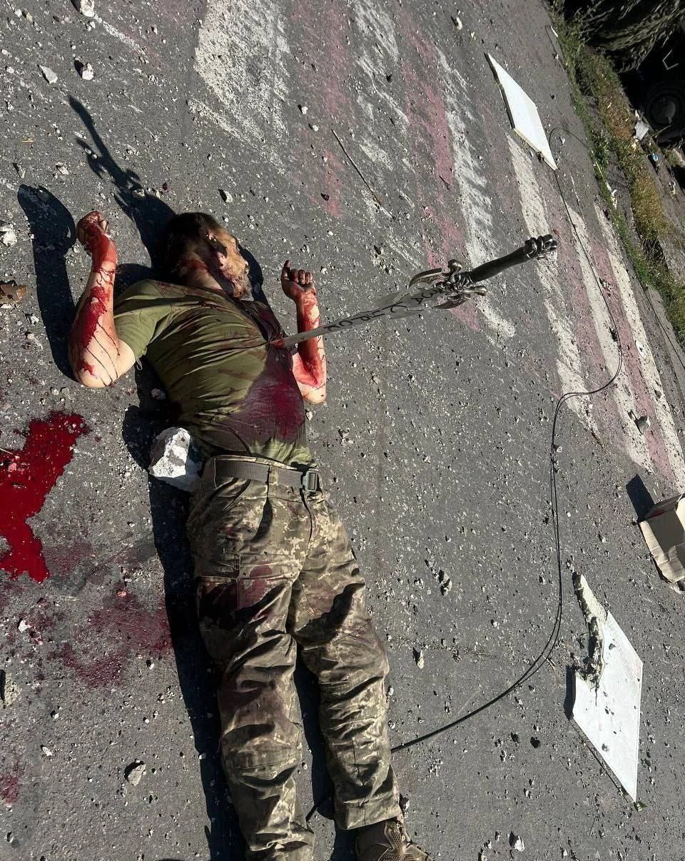 Lent.az xarici mediaya istinadla bildirir ki, əsirin əllərini bağlayıblar və üzərində “Kursk üçün” yazılan qılıncla öldürüblər.