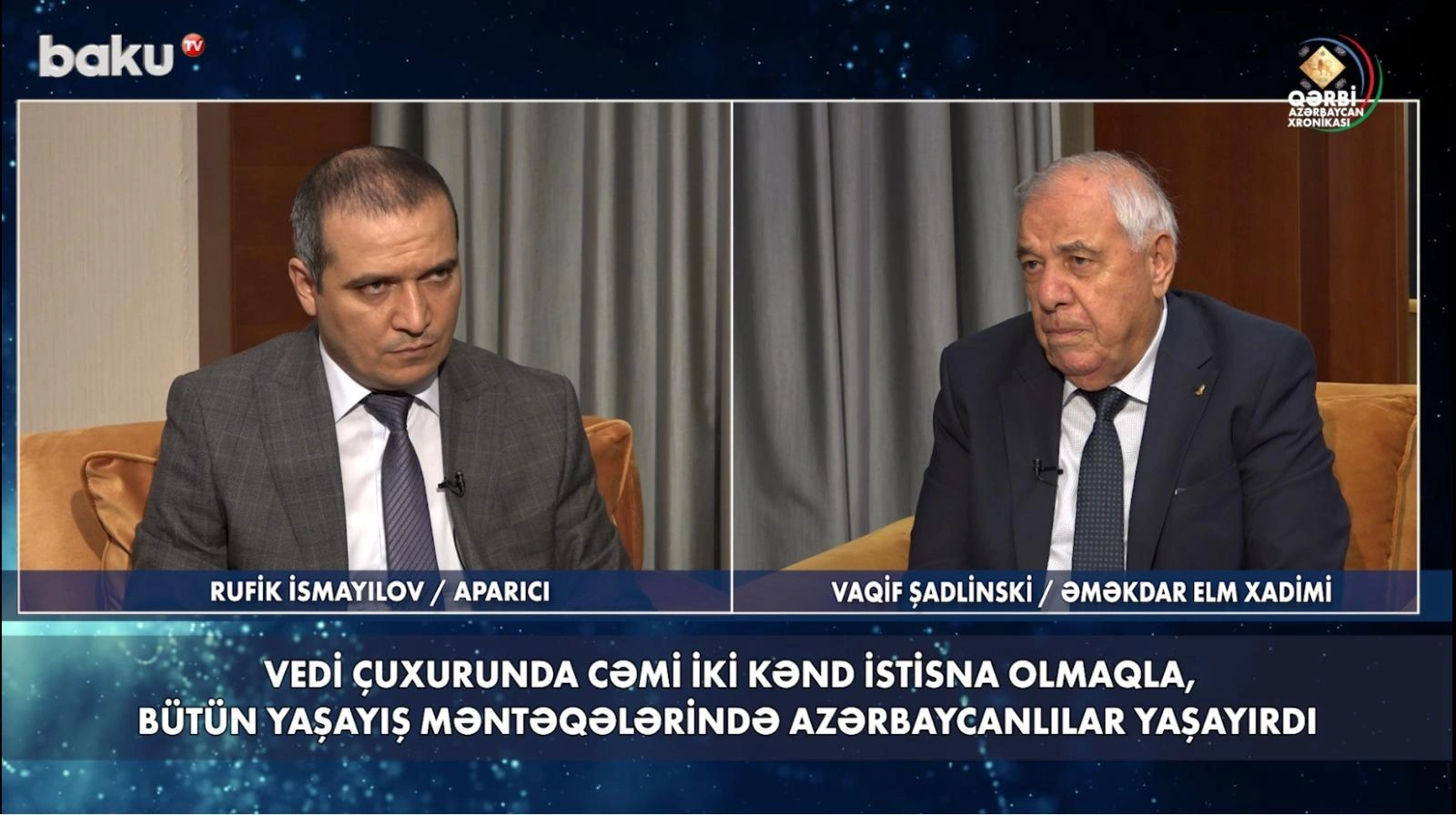 “Report” xəbər verir ki, jurnalist Rufik İsmayılovun müsahibi Qərbi Azərbaycan İcmasının Ağsaqqallar Şurası sədrinin müavini, əməkdar elm xadimi Vaqif Şadlinski olub.