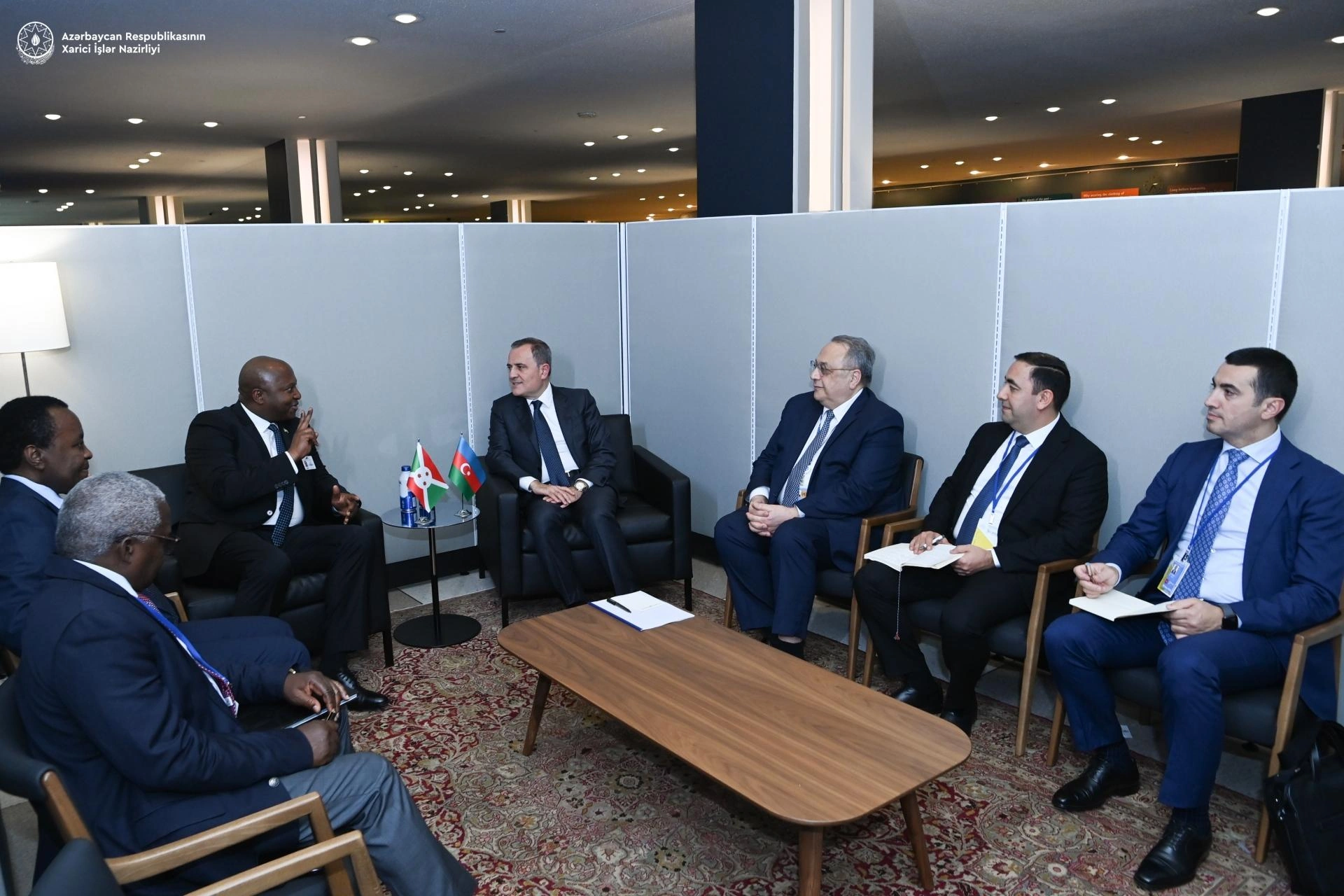 Azərbaycan Respublikasının xarici işlər naziri Ceyhun Bayramov BMT Baş Assambleyasının 79-cu sessiyasının yüksək səviyyəli həftəsi çərçivəsində Burundi Respublikasının xarici işlər və inkişafı üçün əməkdaşlıq naziri Albert Şinqiro ilə fikir mübadiləsi aparıb.