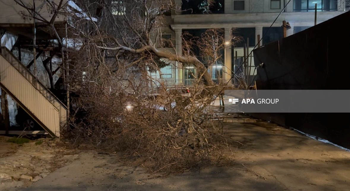 Bakıda güclü külək ağacı kökündən qoparıb.