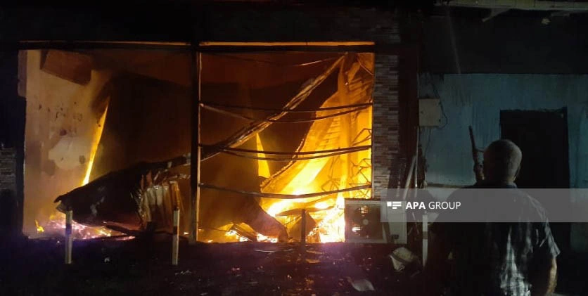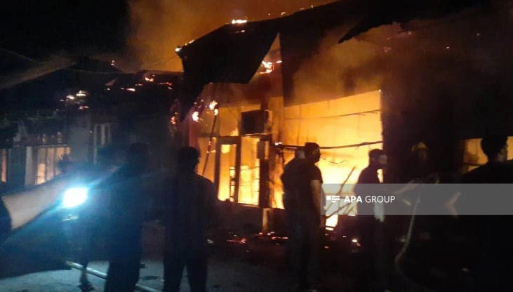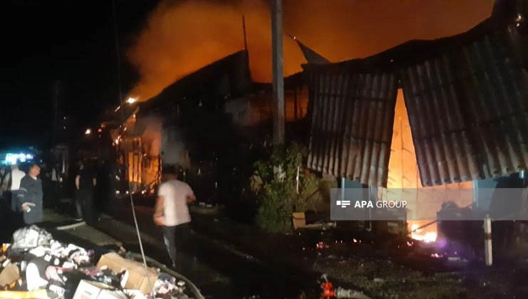 Beyləqan rayon bazarında güclü yanğın olub.