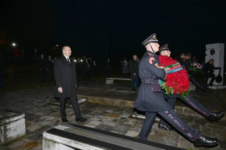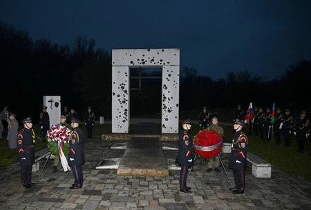 Prezident İlham Əliyev və Prezident Peter Pelleqrini abidənin önünə əklil qoydular.