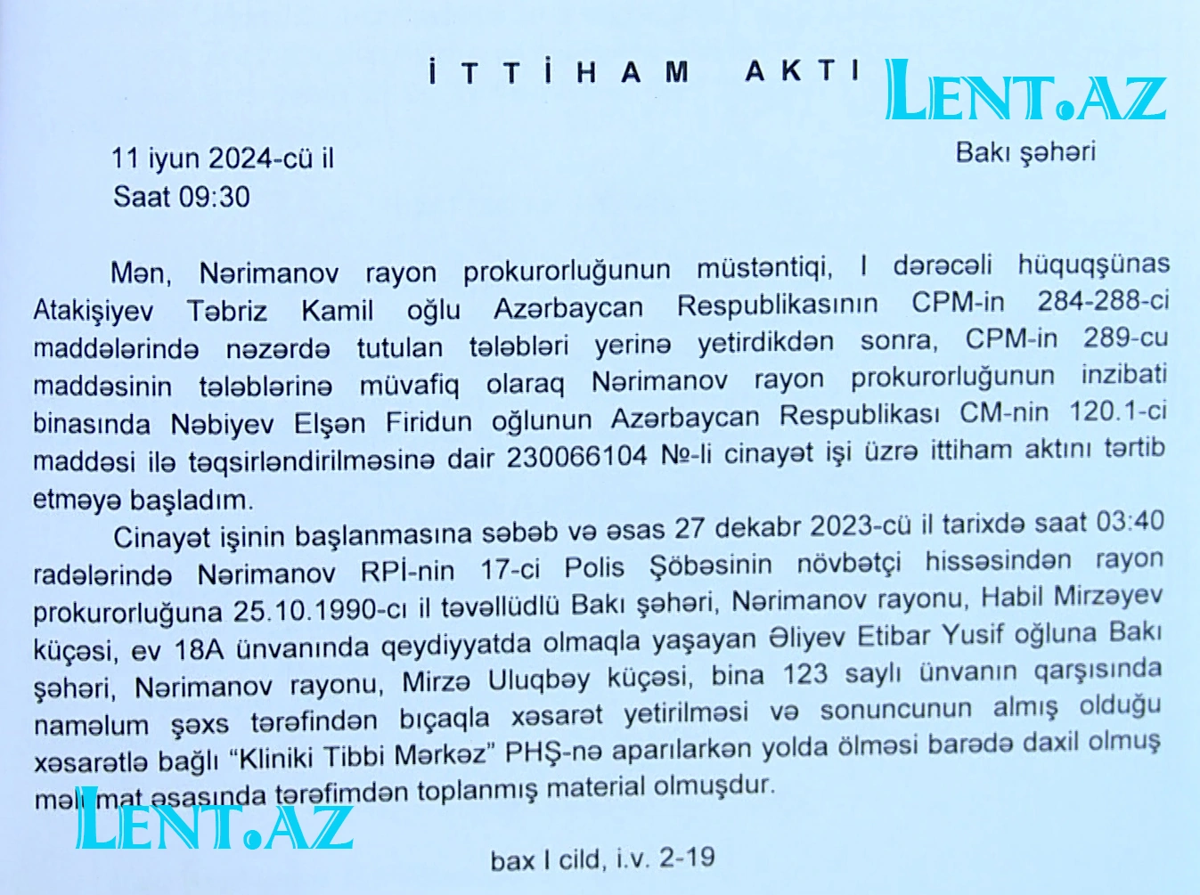 Lent.az qətl hadisəsinin istintaq materiallarını əldə edib.