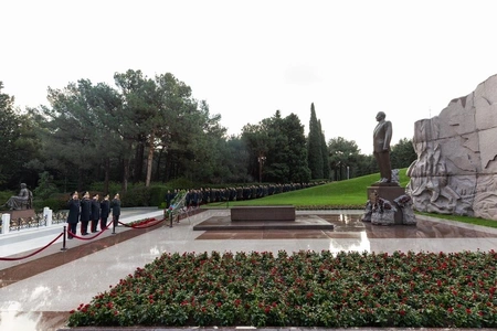 "Report" xəbər verir ki, onlar məzarın önünə gül dəstələri qoyub, Ulu Öndərin əziz xatirəsini böyük ehtiramla anıblar.