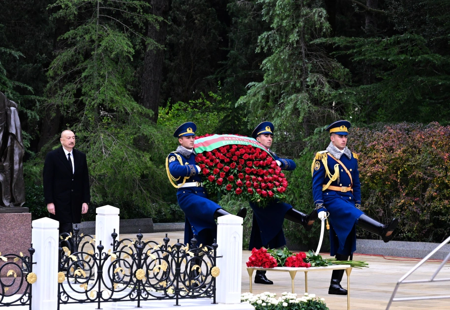 Prezident İlham Əliyev Ulu Öndərin məzarı önünə əklil qoyub.