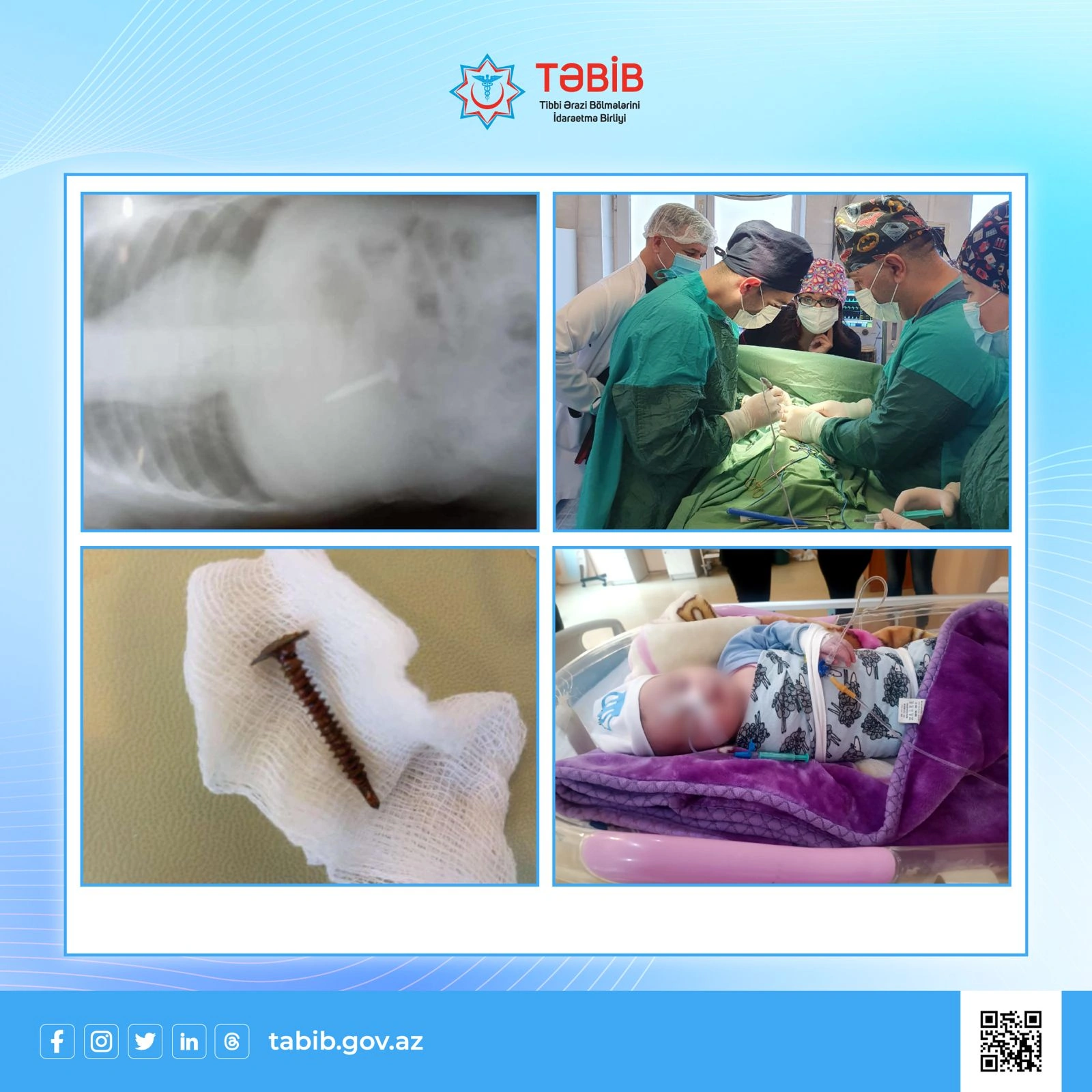 Tibb müəssisəsinin uzman həkim-cərrahı Araz Hüseynov və həkim-cərrah Elnur İsgəndərov tərəfindən yad cisim olan mismarın xaric olunması əməliyyatı uğurla başa çatıb.