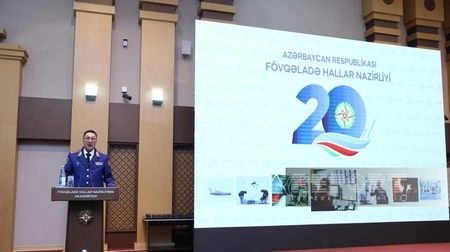 Daha sonra "Azərbaycan Respublikası Fövqəladə Hallar Nazirliyinin əməkdaşlarına ali hərbi və ali xüsusi rütbələrin verilməsi haqqında" və "Azərbaycan Respublikası Fövqəladə Hallar Nazirliyi əməkdaşlarının təltif edilməsi haqqında" Azərbaycan Respublikası Prezidentinin 15 dekabr 2025-ci il tarixli sərəncamları oxunub.