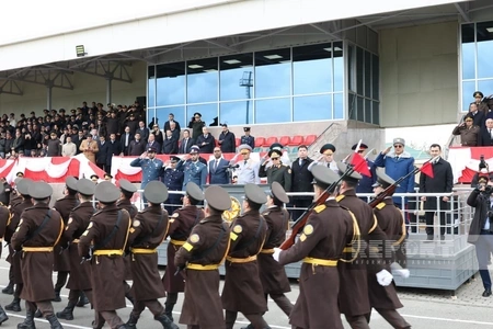 Dövlət Himni səsləndirildikdən sonra Fövqəladə Hallar Nazirliyinin şəxsi heyətinin təntənəli keçidi olub.