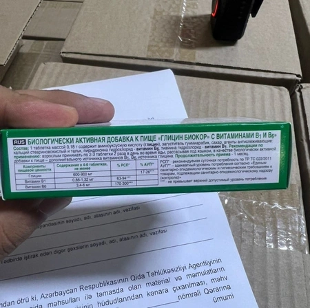 "Nord Star Pharma" MMC-nin Rusiyadan idxal etdiyi 10 min "Qlisin Biokor" B1 və B6 vitaminləri ilə" əmtəə nişanlı bioloji aktiv qida məhsulunun müayinəsi nəticəsində uyğunsuzluq aşkarlanıb.