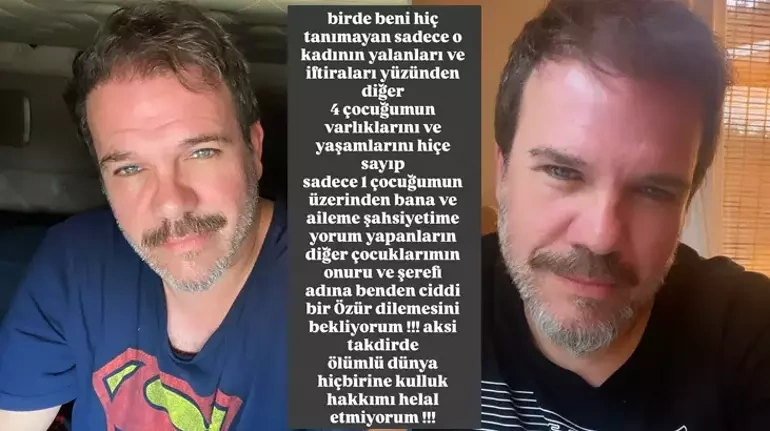 “Məni heç tanımayan, yalnız o qadının yalanları və iftiraları üzündən digər 4 uşağımın varlığını və həyatlarını yox sayıb təkcə 1 uşağım üzərindən mənə, ailəmə və şəxsiyyətimə şərh yazanların, digər uşaqlarımın namusu və şərəfi naminə məndən ciddi şəkildə üzr istəməsini gözləyirəm. Əks halda ölümlü dünyada heç birinə qul haqqımı halal etmirəm!”