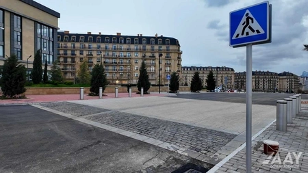 Yenidənqurma işləri çərçivəsində avtonəqliyyat vasitələrinin parklanmasının təmin edilməsi məqsədilə 2,5 metr enində xüsusi parkinq zolaqları yaradılıb.