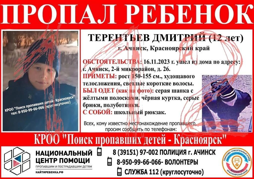 Krasnoyarsk diyarının Açinsk şəhərində itkin düşən 12 yaşlı uşağın meyiti tapılıb.