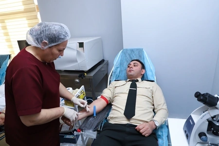 "Report" xəbər verir ki, "Talassemiyasız həyat naminə" proqramı çərçivəsində keçirilən könüllü qanvermə aksiyasında Dövlət Xidmətinin əməkdaşları iştirak edib.