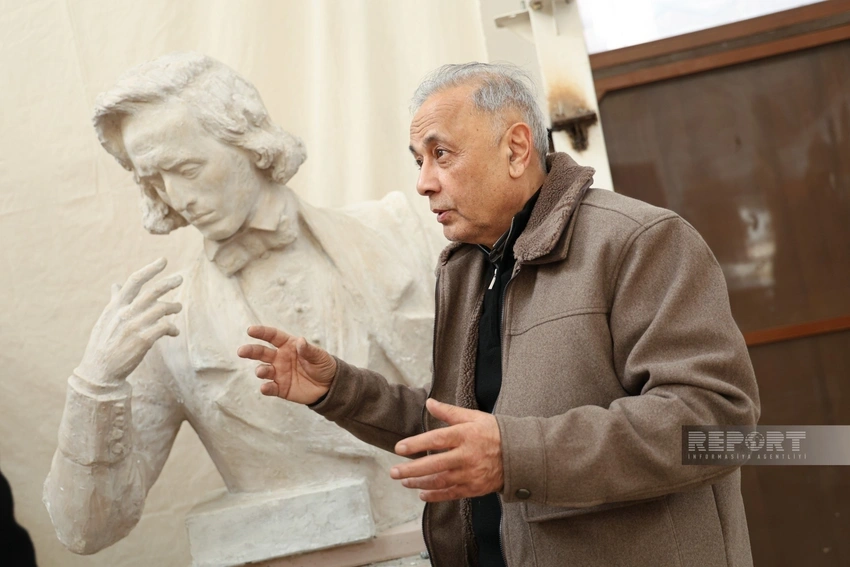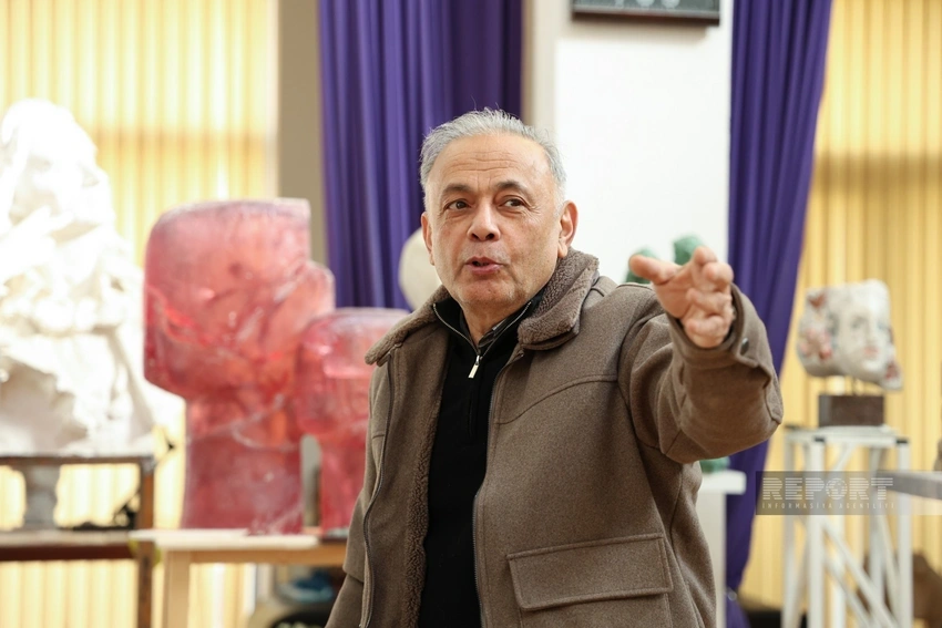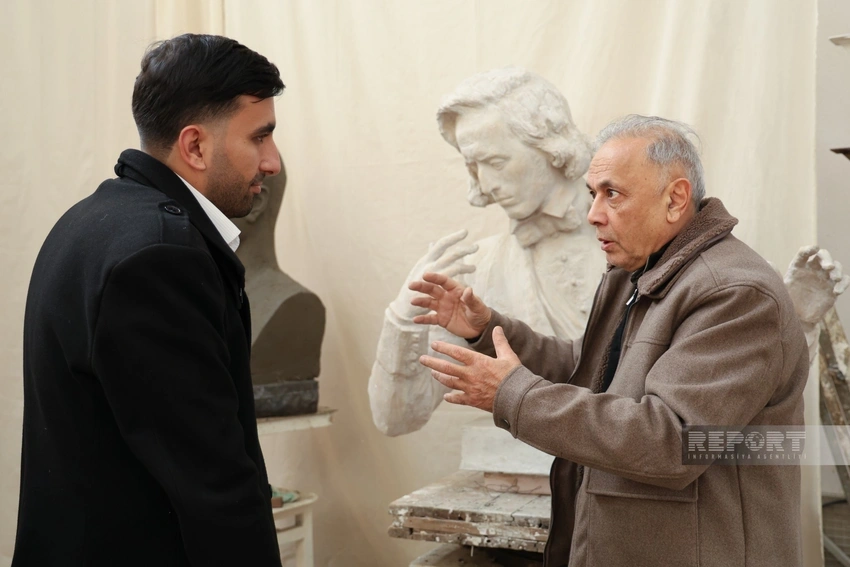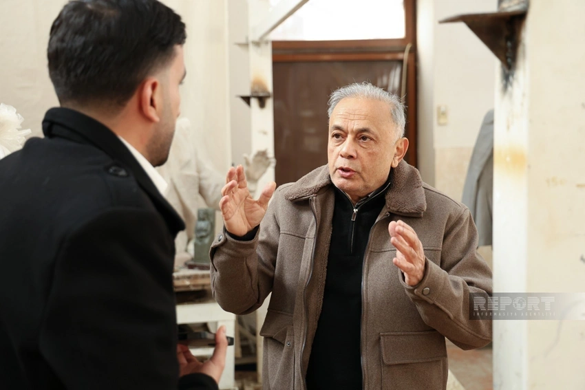 – Kömək elə, onu aşağı salım, davam edək. Bura gəlmisənsə, gərək işləyəsən. Bir dəfə biri mənə sual verdi ki, sizin heykəltəraşlıq üçün lazımi alətləriniz var? Nə cavab verim, bilmədim, vallah.