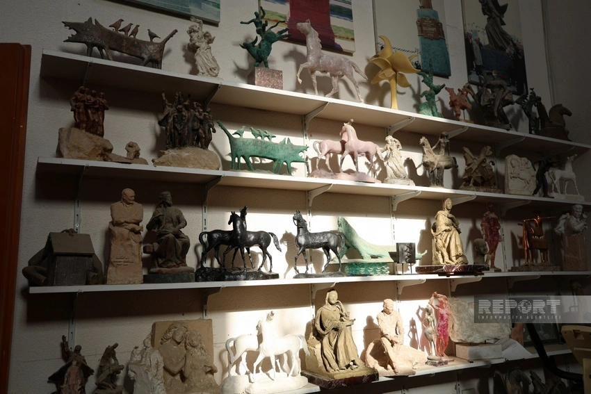 – Onda tələsməyək, vaxtımız var hələ, atmosferə düşməyini gözləyim, – eskizlərlə, dəzgah heykəltəraşlıq nümunələri ilə dolu rəflərə söykənib dayanır.